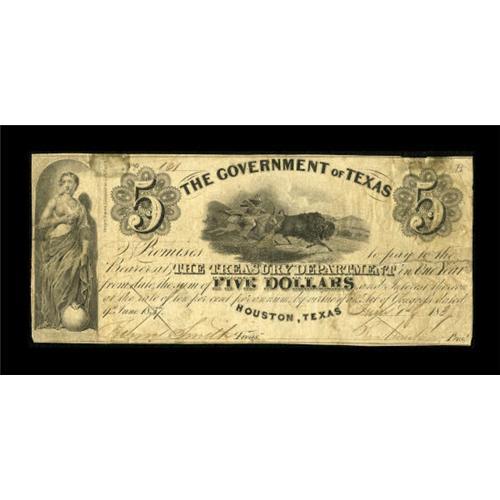 Houston, TX- Government of Texas $5 Jun 1, 1838