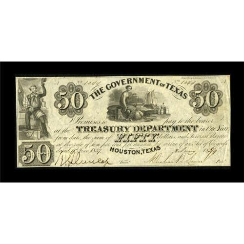 Houston, TX- Government of Texas $50 Jan 8, 1839