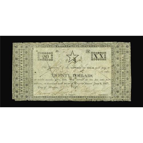 Houston, TX - Republic of Texas $20 Dec. 1, 1837 Cr. H5