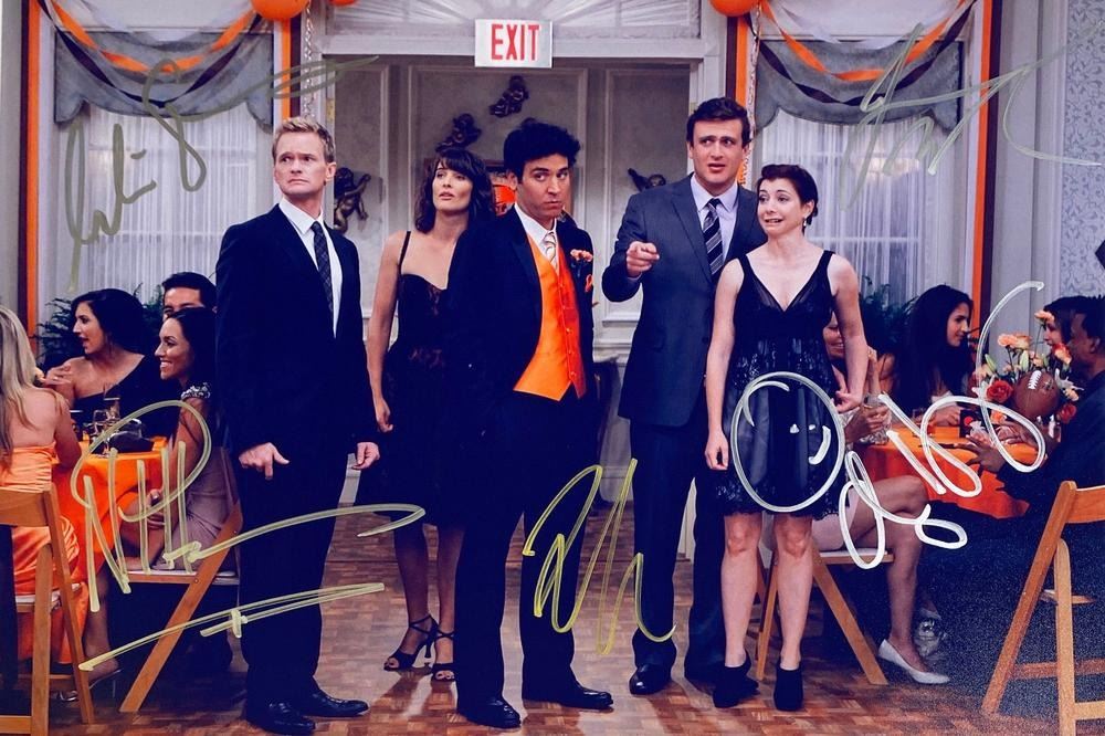 How I Met Your Mother cast facsimile signed photo autographed by Josh Radnor, Jason Segel, Cobie Smulders, Neil Patrick Harris and Alyson Hannigan. 8x10 inches. This item is a reprint of an original autograph