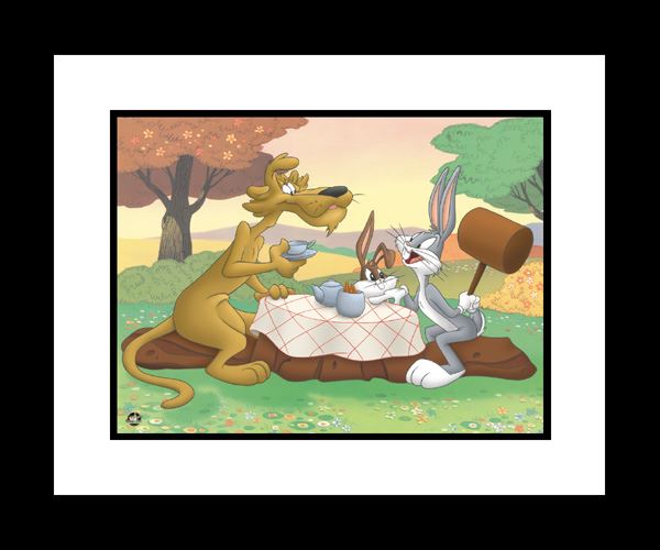 This framed limited edition 16x20 giclee is entitled “How Many Lumps." This image from "Rabbit's Kin" is a Merrie Melodies short produced in 1951 and released on November 15, 1952. It was directed by Robert McKimson. Edition Size 500.“Giclée,†as a fine art term, has come to be associated with prints using fade-resistant "archival" inks (including solvent inks) and the inkjet printers that use them.