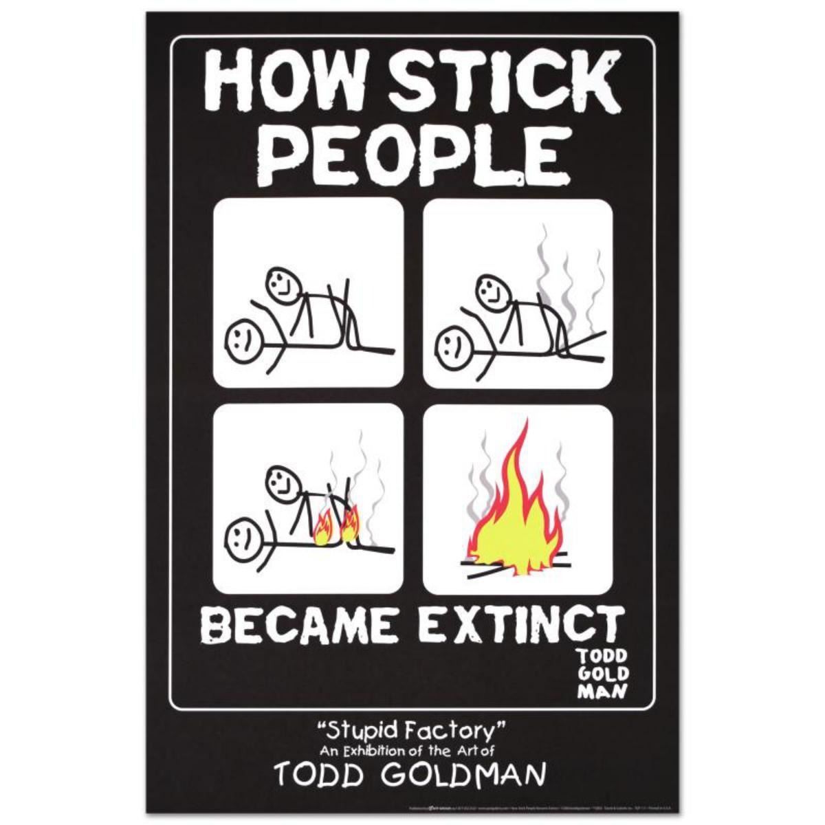 "How Stick People Became Extinct" is a fine art litho poster by Todd Goldman! Measures approx. 24" x 36" (poster). Reference #: 205101.