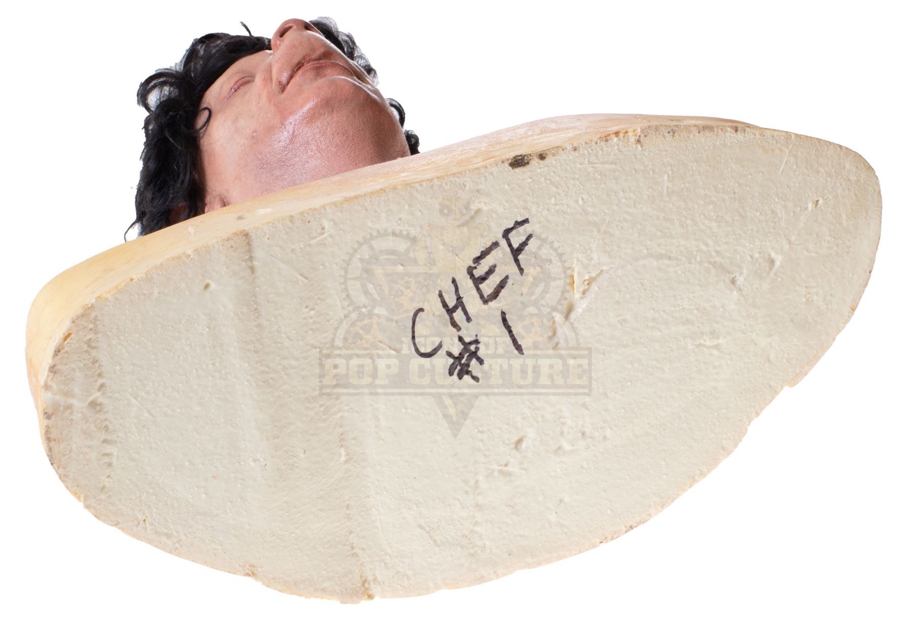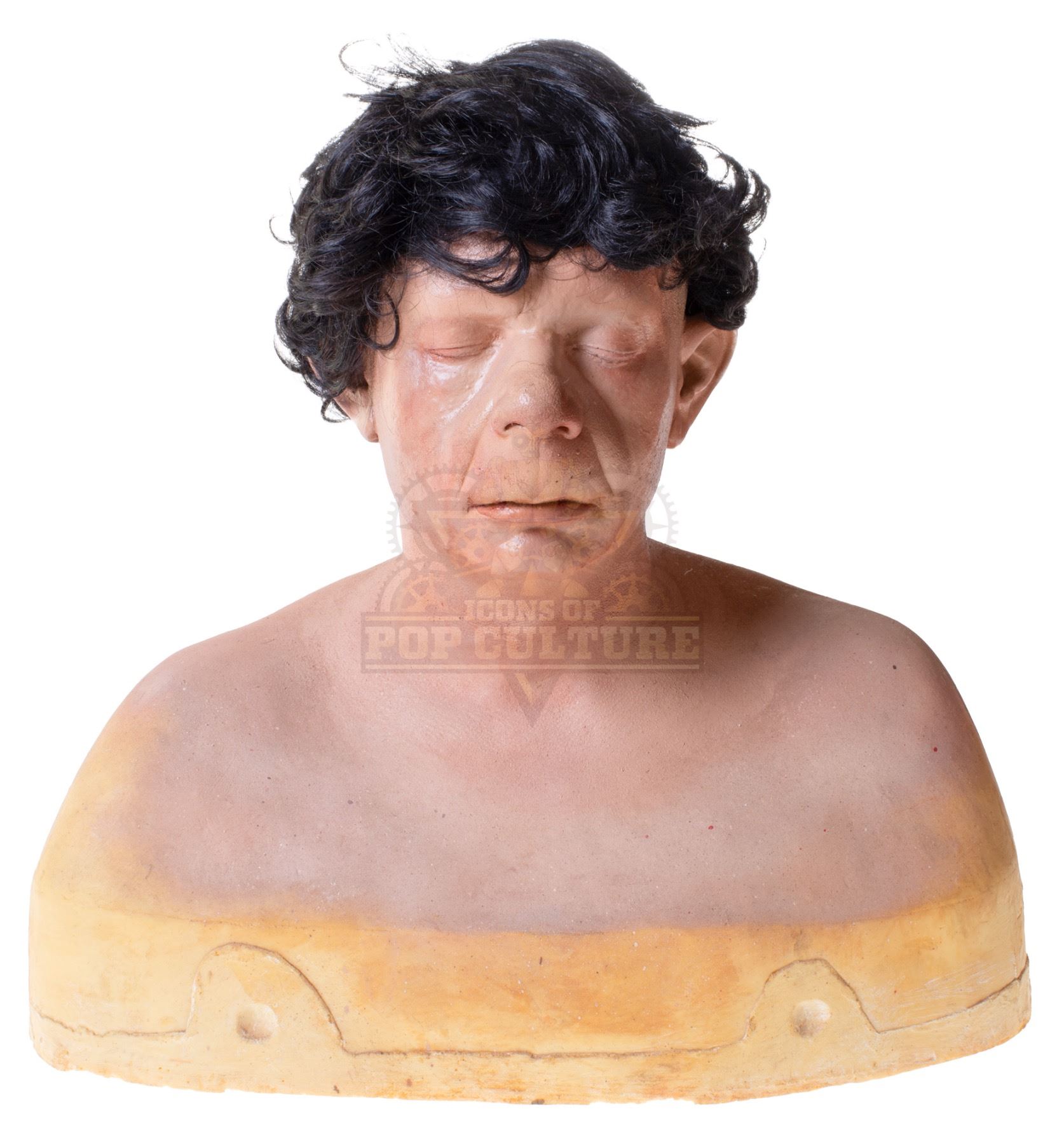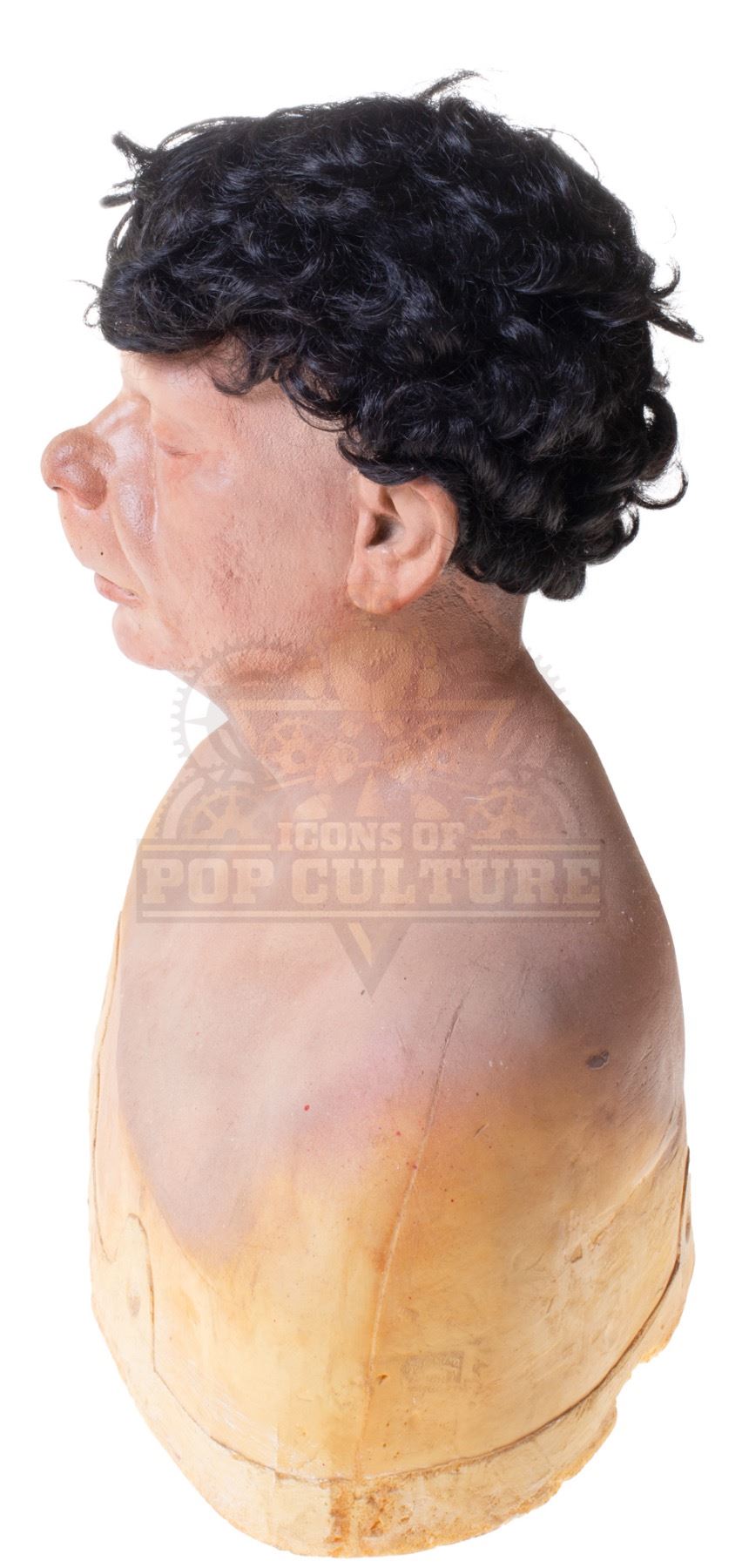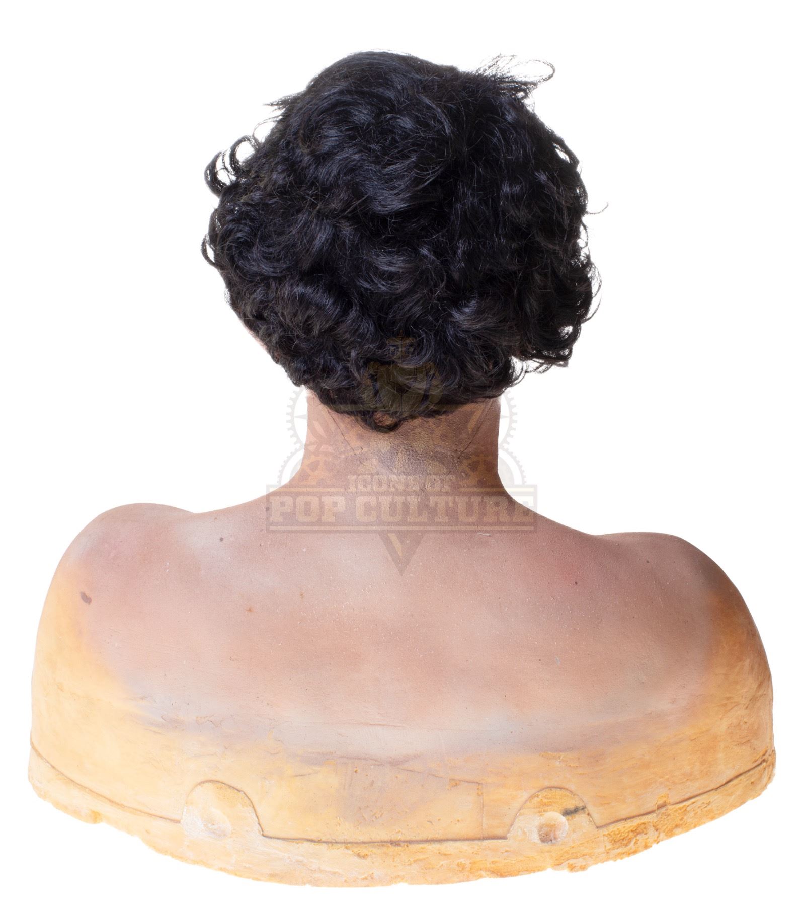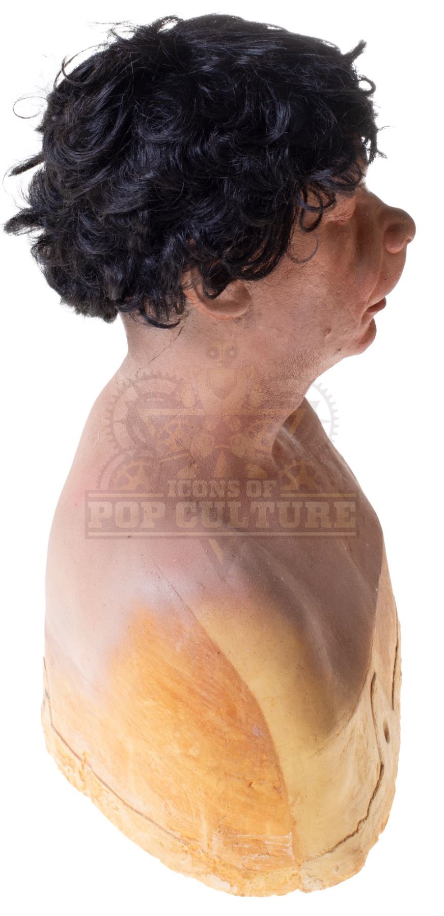 This bust and wig were custom-made by Rick Baker and his team for use by the make-up effects team during the production. The hard foam bust was created using the casting of the actor’s (Clay Martinez) face and features the applied face appliances with airbrushed finished skin color. The bust measures 19” x 21” x 9”.