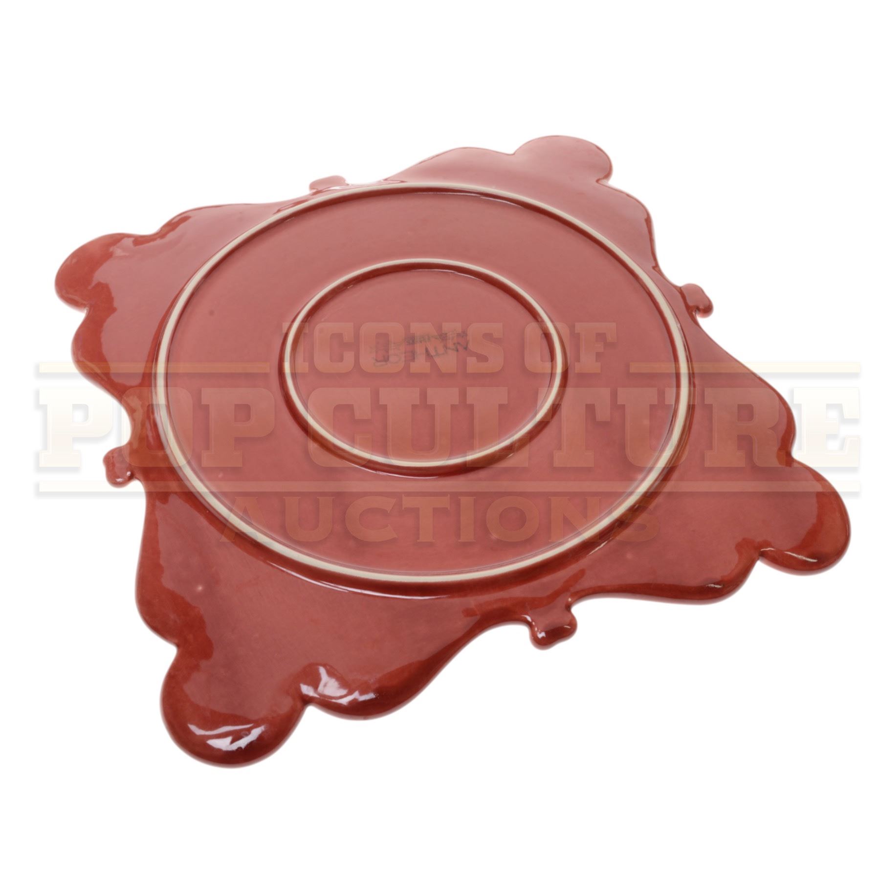 This elegant red ceramic dinner plate was used as set dressing and by various Whoville characters during the lavish Christmas feast scene in How the Grinch Stole Christmas (Universal, 2000), directed by Ron Howard and starring Jim Carrey as the beloved green mischief-maker. The film’s climactic banquet, celebrating unity and joy, featured a whimsical array of unique-designed dishware that perfectly captured the eccentric charm of Dr. Seuss’ world.