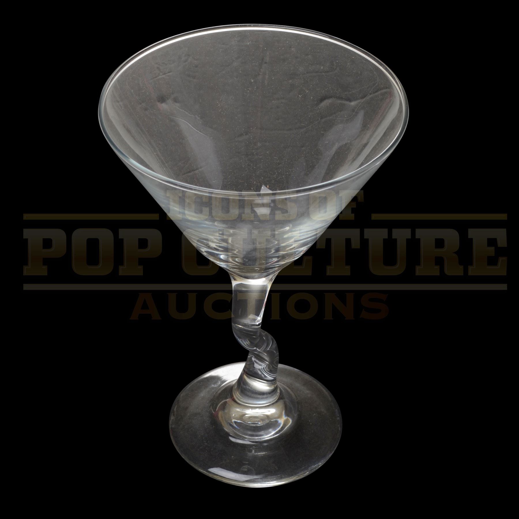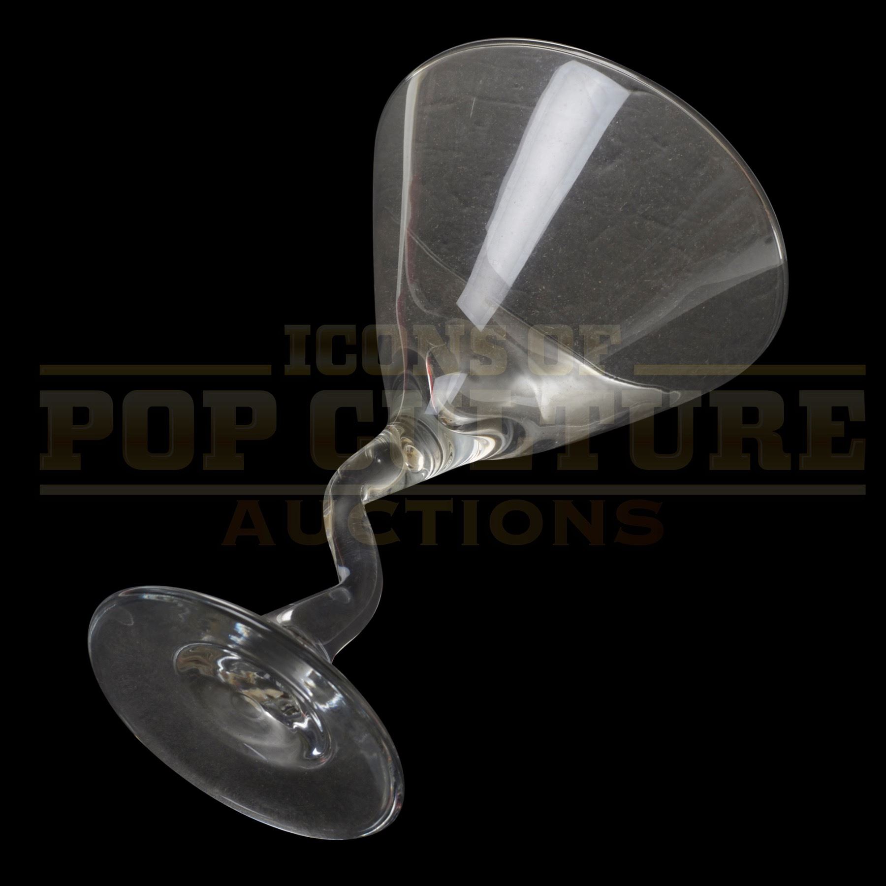 This martini glass was acquired by the production for use by various actors during filming of the adult Whoville Christmas party (the night the grinch arrived in his pumbersella). The glass martini glass features a curved stem and measures 6.5" tall x 4.5" in diameter.