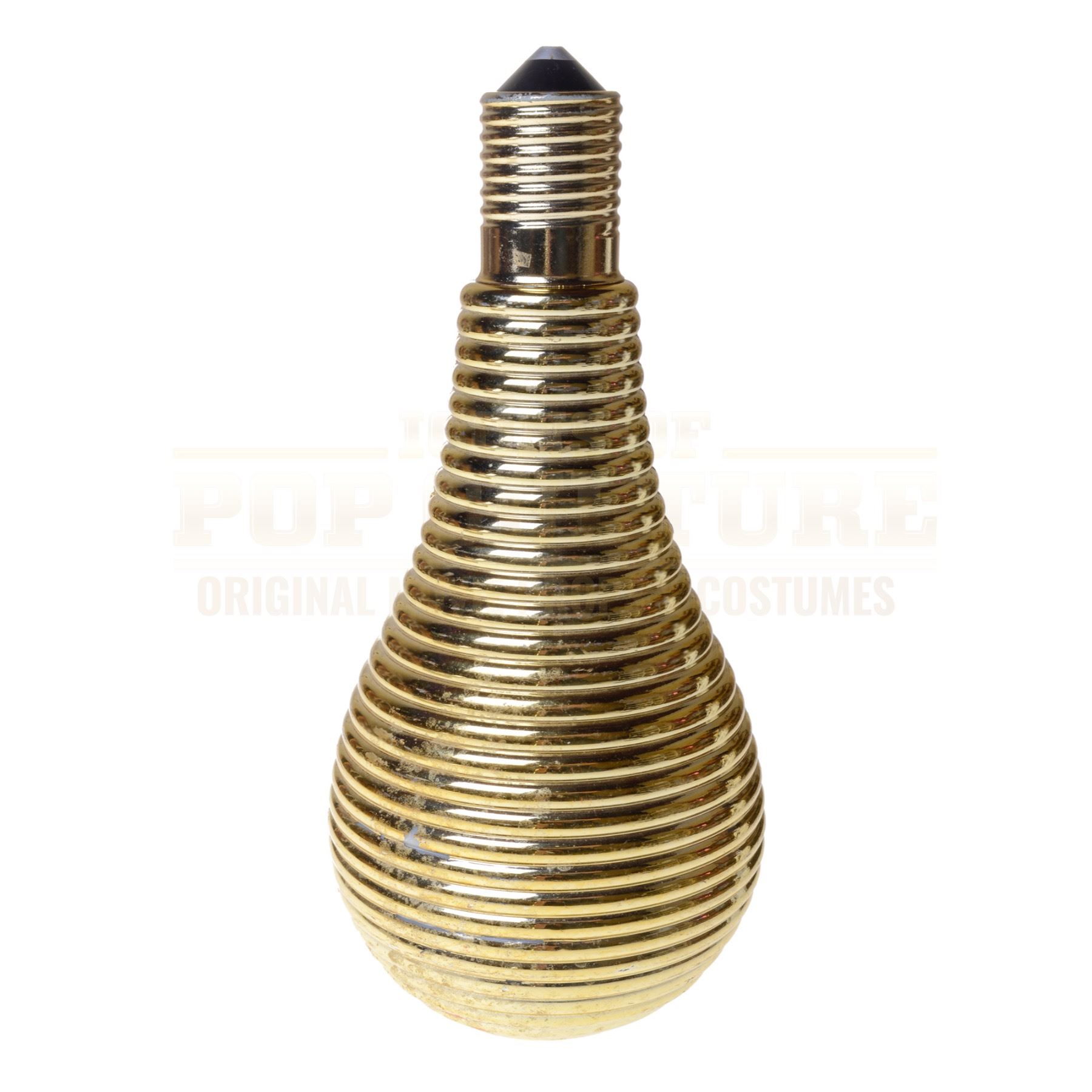 This prop ornament is one of the most recognizable shapes in the film, making it an iconic piece of How the Grinch Stole Christmas. Custom-made by the production for use as set dressing, this large plastic ornament measures 16” x 7” in diameter and features a stunning gold color finish. Its distinctive design can be seen in several key scenes, including the decorating of the Whoville Christmas Tree at the opening of the film. This ornament captures the whimsical charm of the Whoville celebration, making it a standout piece for any collector or fan of the film.
