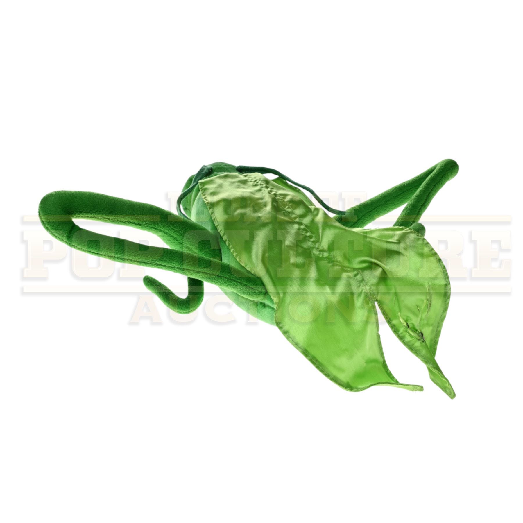 Measuring an impressive 21" x 9" x 9", the grasshopper features bright green velvety fabric, a satin-finish wing section, and carefully detailed stitching that perfectly captures the Seussian aesthetic of Whoville’s eccentric world. Designed to resemble a stylized grasshopper toy, this prop embodies the quirky, over-the-top charm seen throughout the film’s elaborate production design.