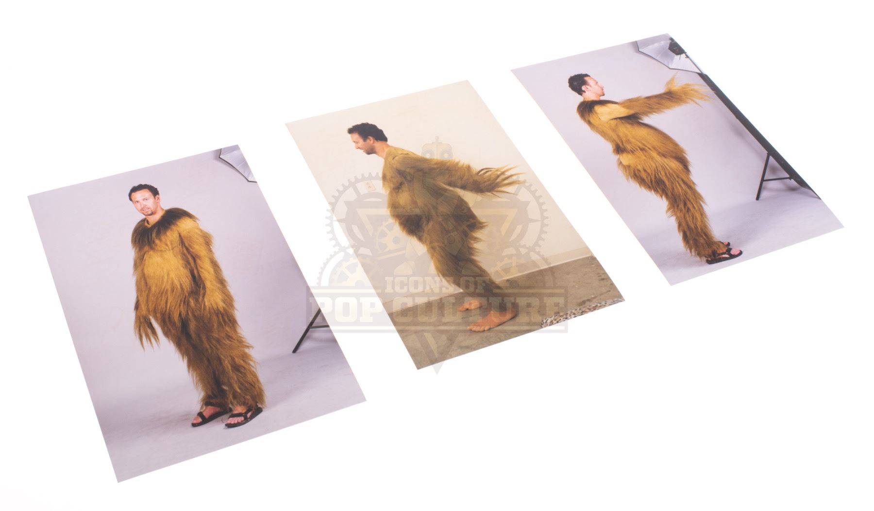 A rare set of three original printed 4” x 6” images of the Grinch's fur suit during the “Grinch” costume test fitting. The images were taken at Rick baker’s Cinovation Studios during the film’s preproduction. These are unpublished images of the fitting, offering a rare look at the costume design process.