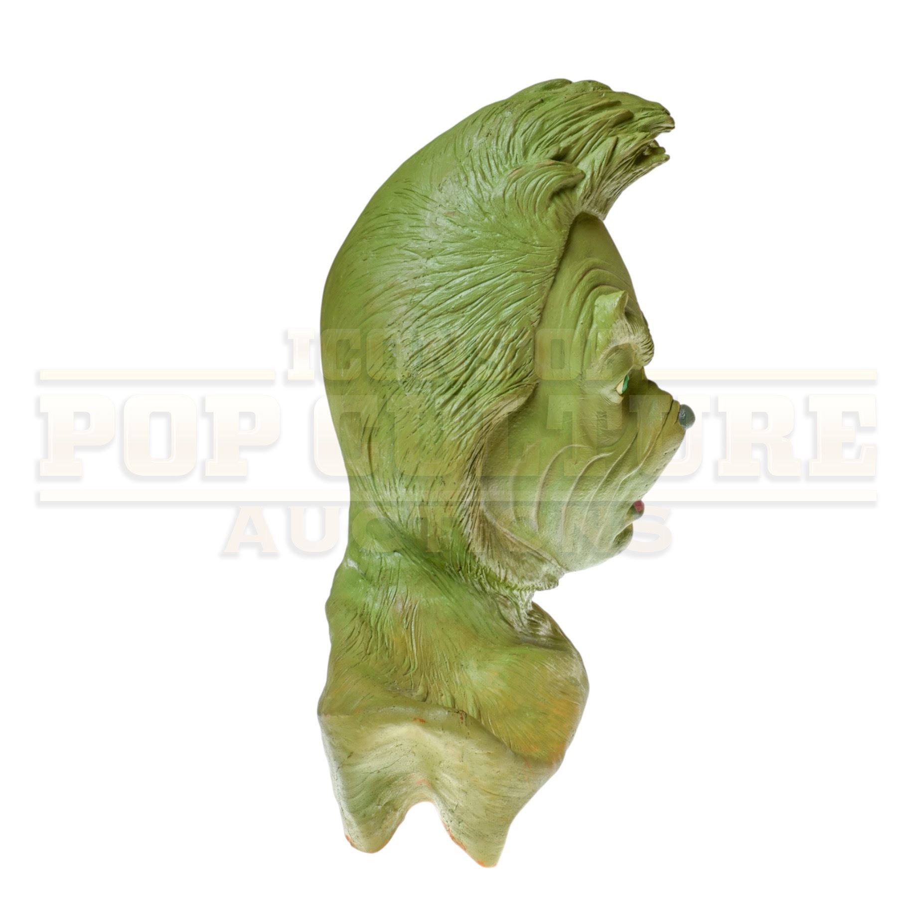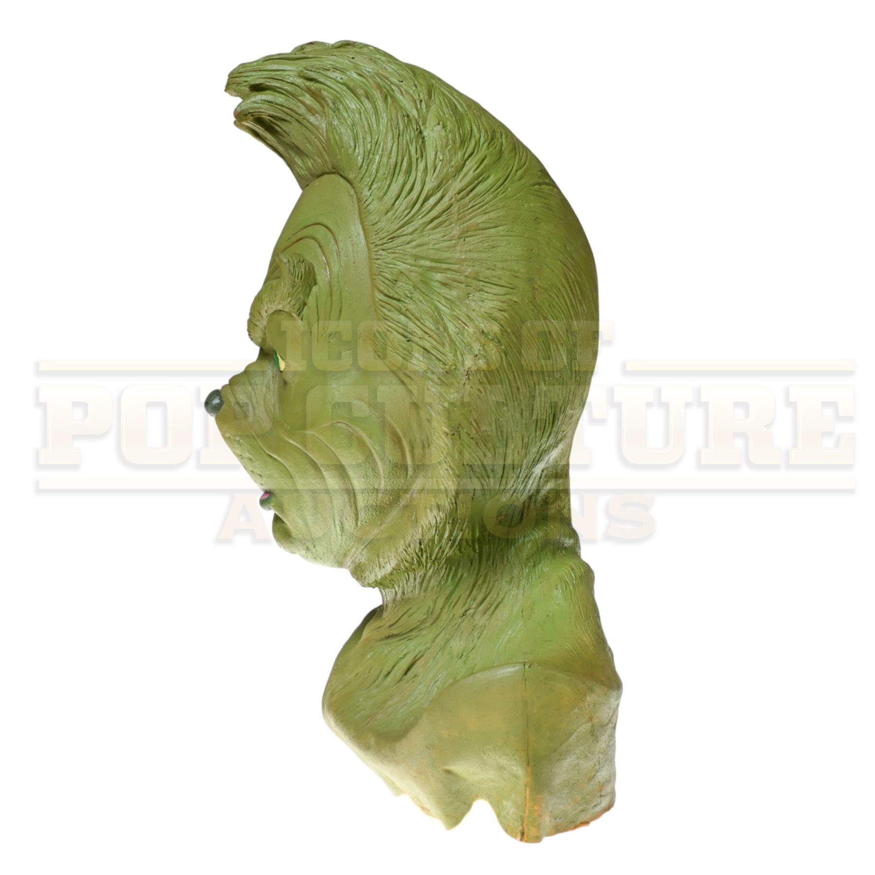 Standing as a museum-worthy representation of one of cinema’s most recognizable holiday characters, this Grinch head is perfect for collectors of Christmas classics, creature effects, and Dr. Seuss memorabilia. A whimsical and conversation-starting centerpiece, it brings a touch of Whoville magic to any display.