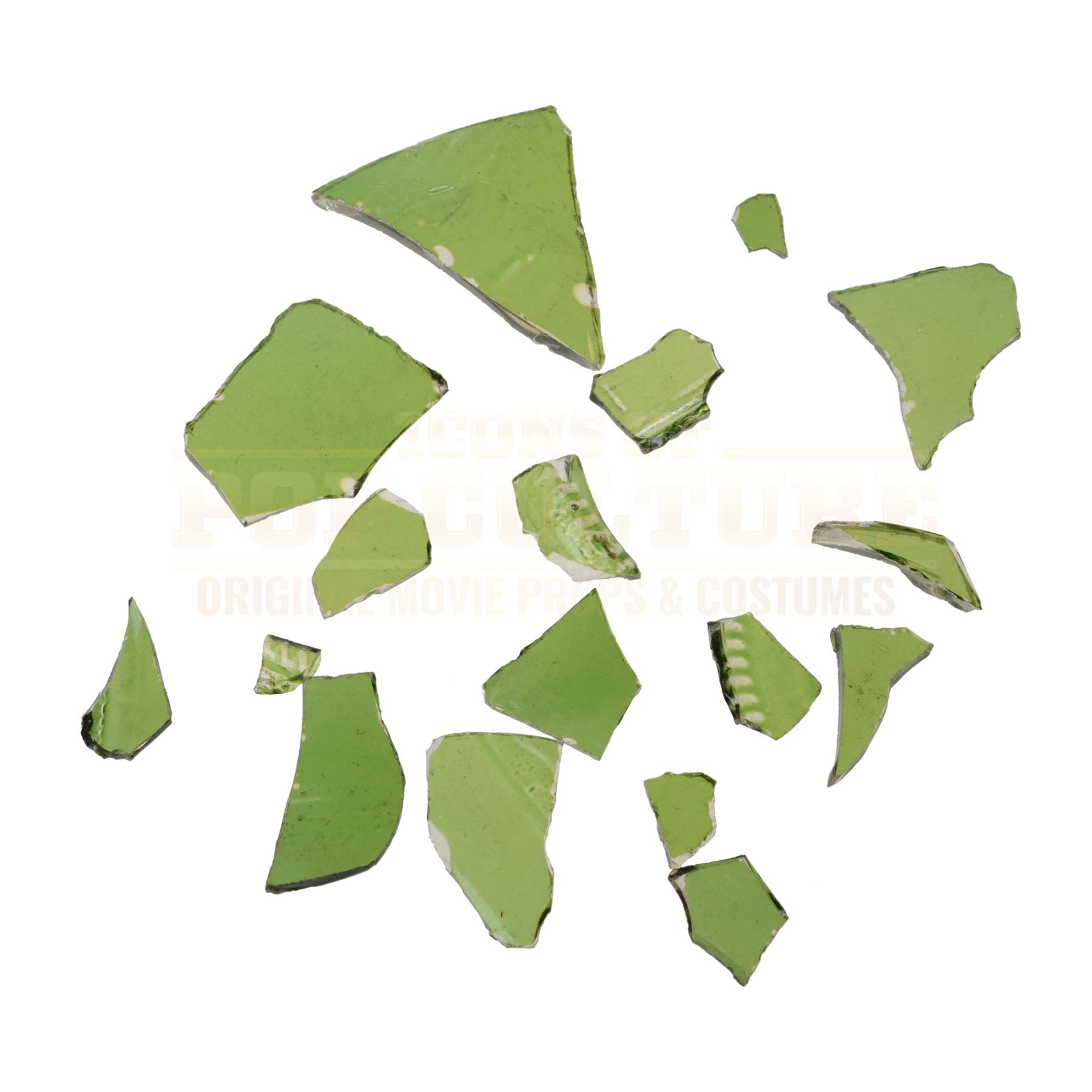These sections of green glass shards were custom-made by the production for use by Jim Carrey as the “Grinch” and as set dressing in the Grinch’s cave. The glass sections range in size, with the largest section measuring 1.75” in length.