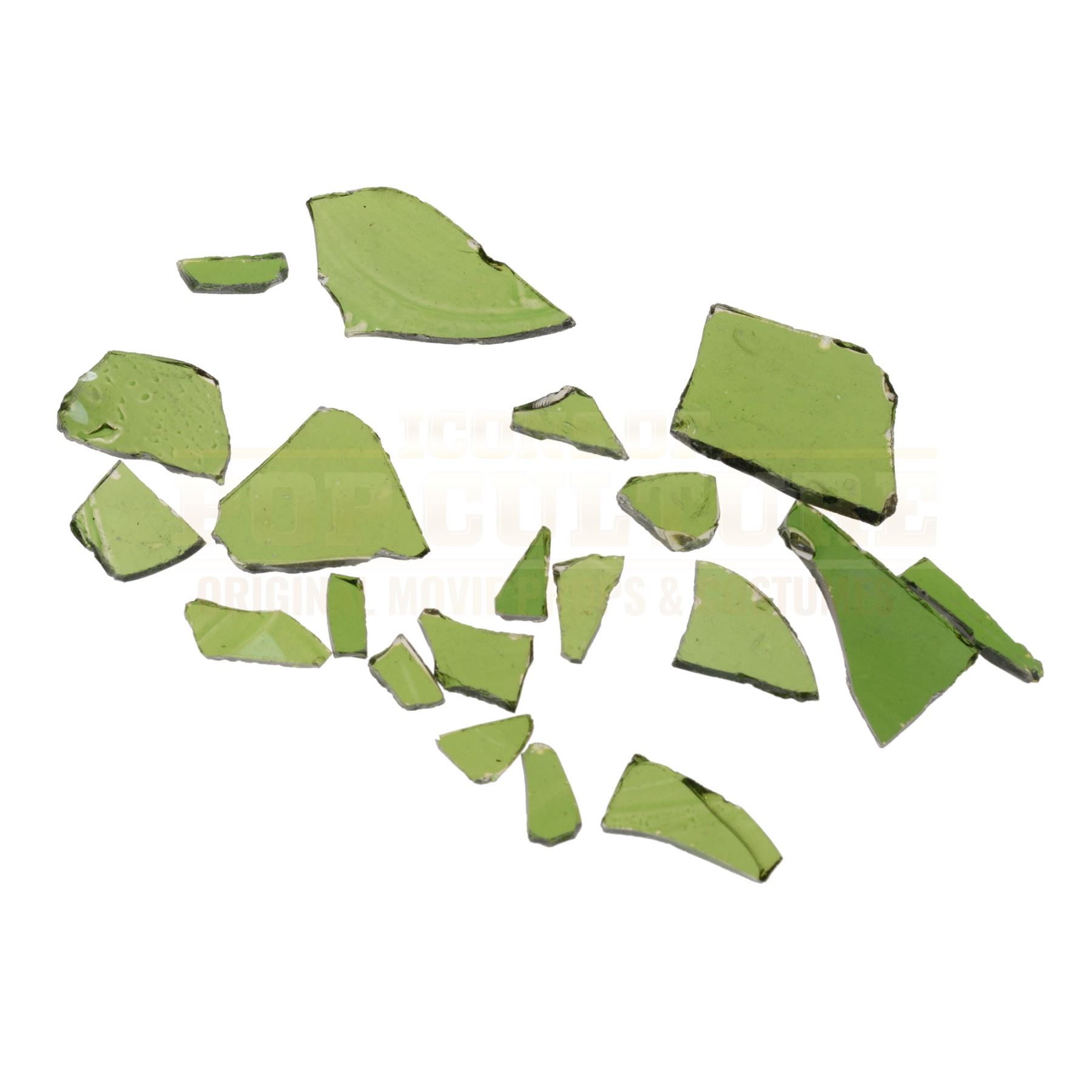 These sections of green glass shards were custom-made by the production for use by Jim Carrey as the “Grinch” and as set dressing in the Grinch’s cave. The glass sections range in size, with the largest section measuring 1.75” in length.