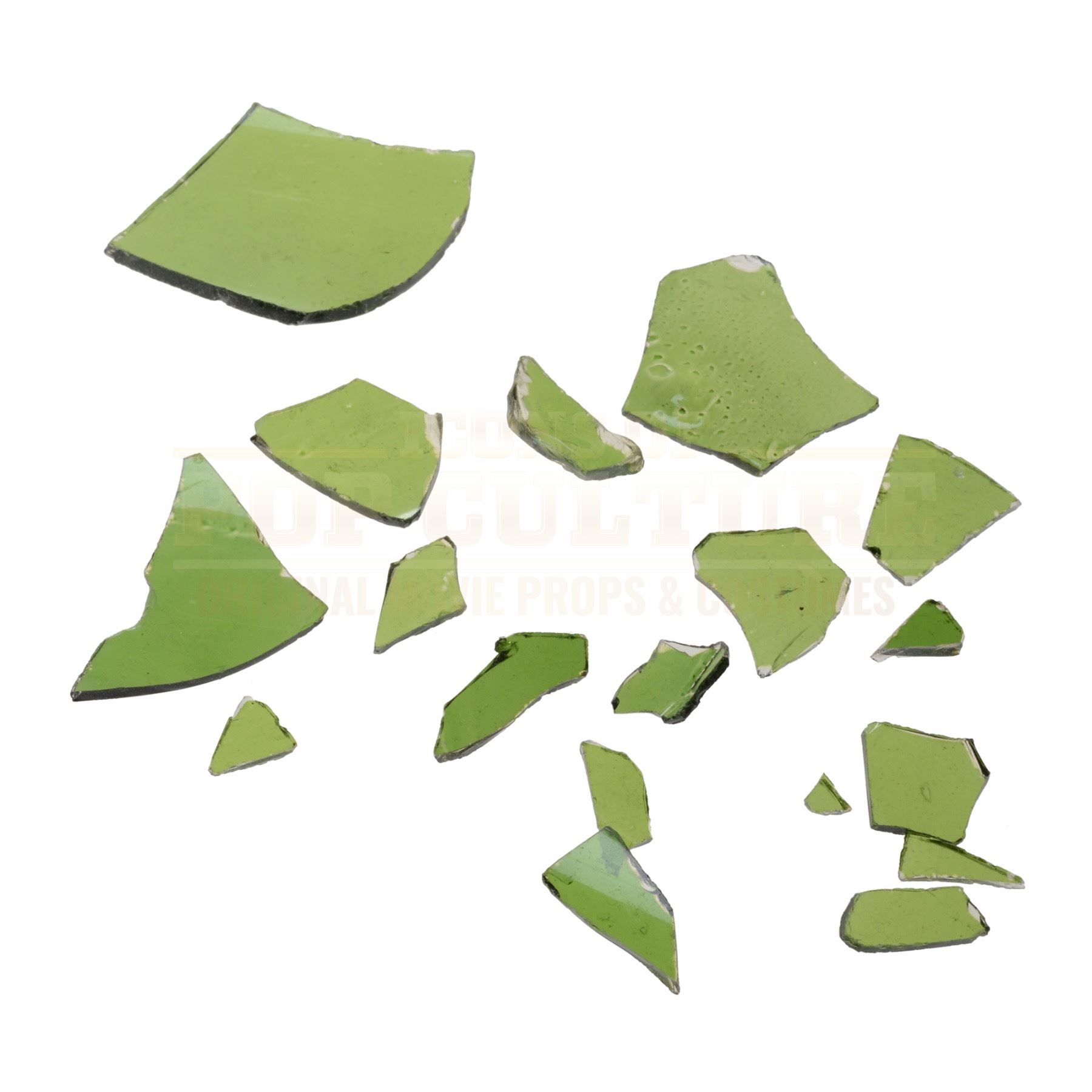These sections of green glass shards were custom-made by the production for use by Jim Carrey as the “Grinch” and as set dressing in the Grinch’s cave. The glass sections range in size, with the largest section measuring 1.75” in length.