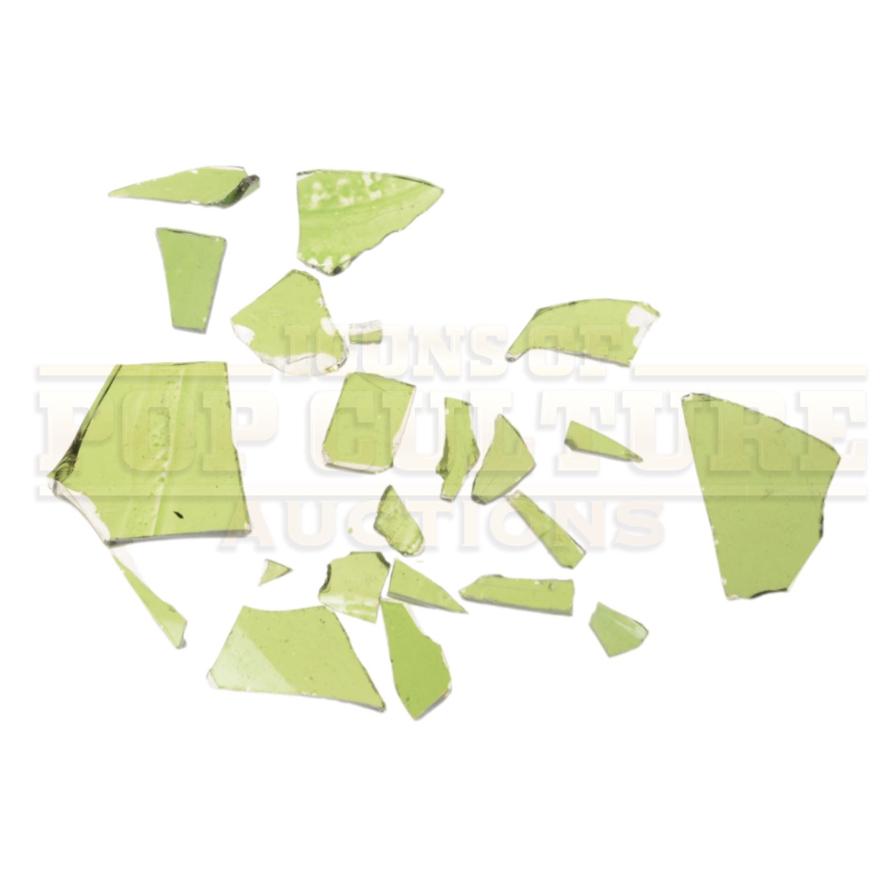 These sections of green glass shards were custom-made by the production for use by Jim Carrey as the “Grinch” and as set dressing in the Grinch’s cave. The glass sections range in size, with the largest section measuring 1” in length.