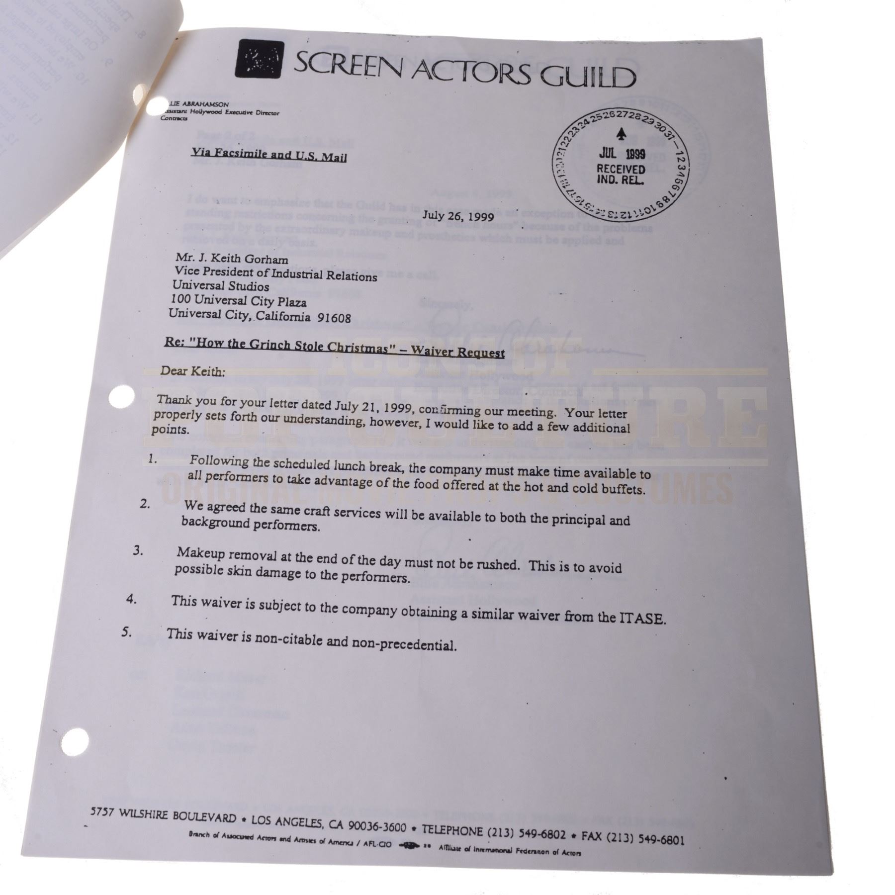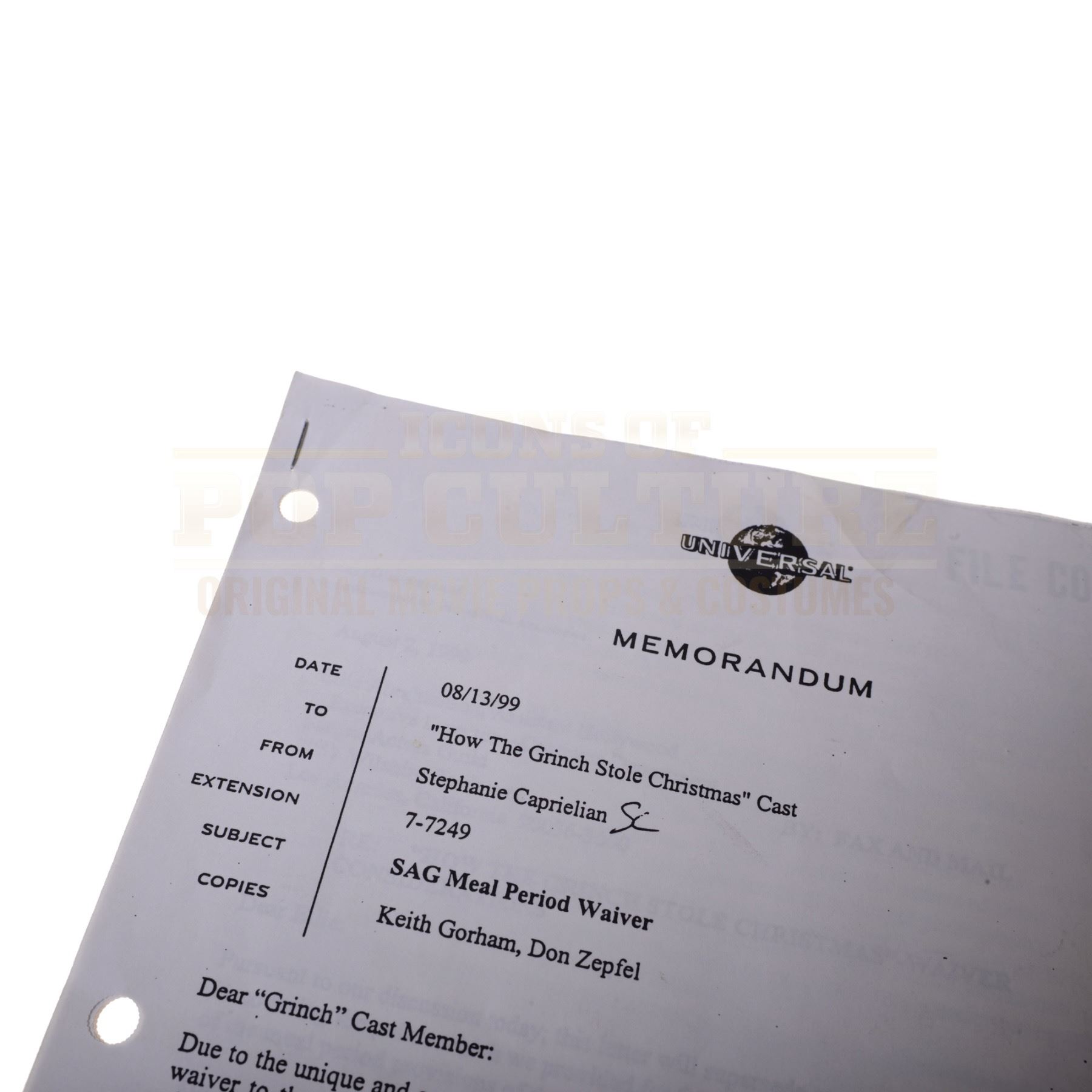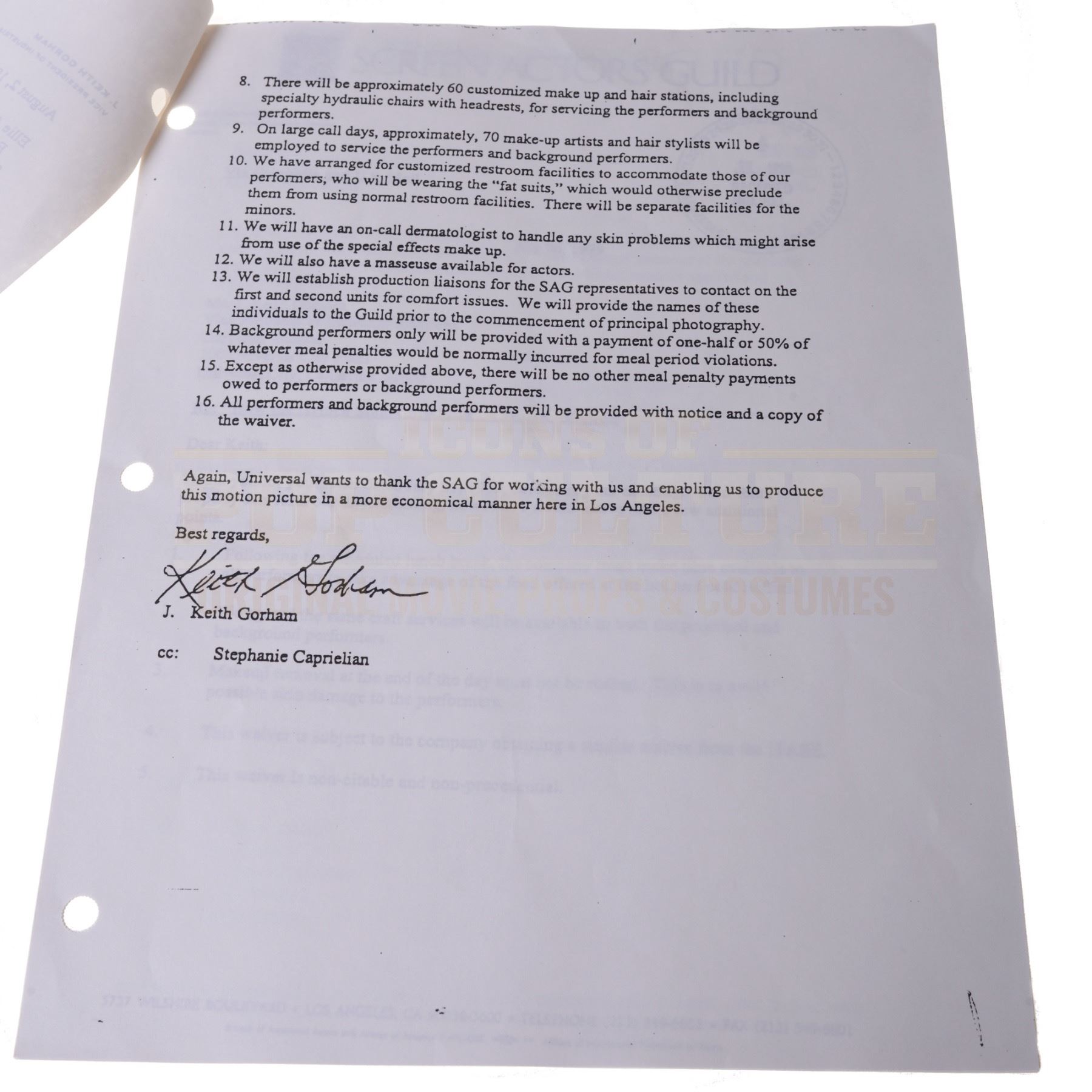 This letter was sent to all cast members on August 13,1999. The Memorandum informed the cast members about the agreement between the production company and SAG over the meal period waiver. A production copy of the waiver is attached to the letter.