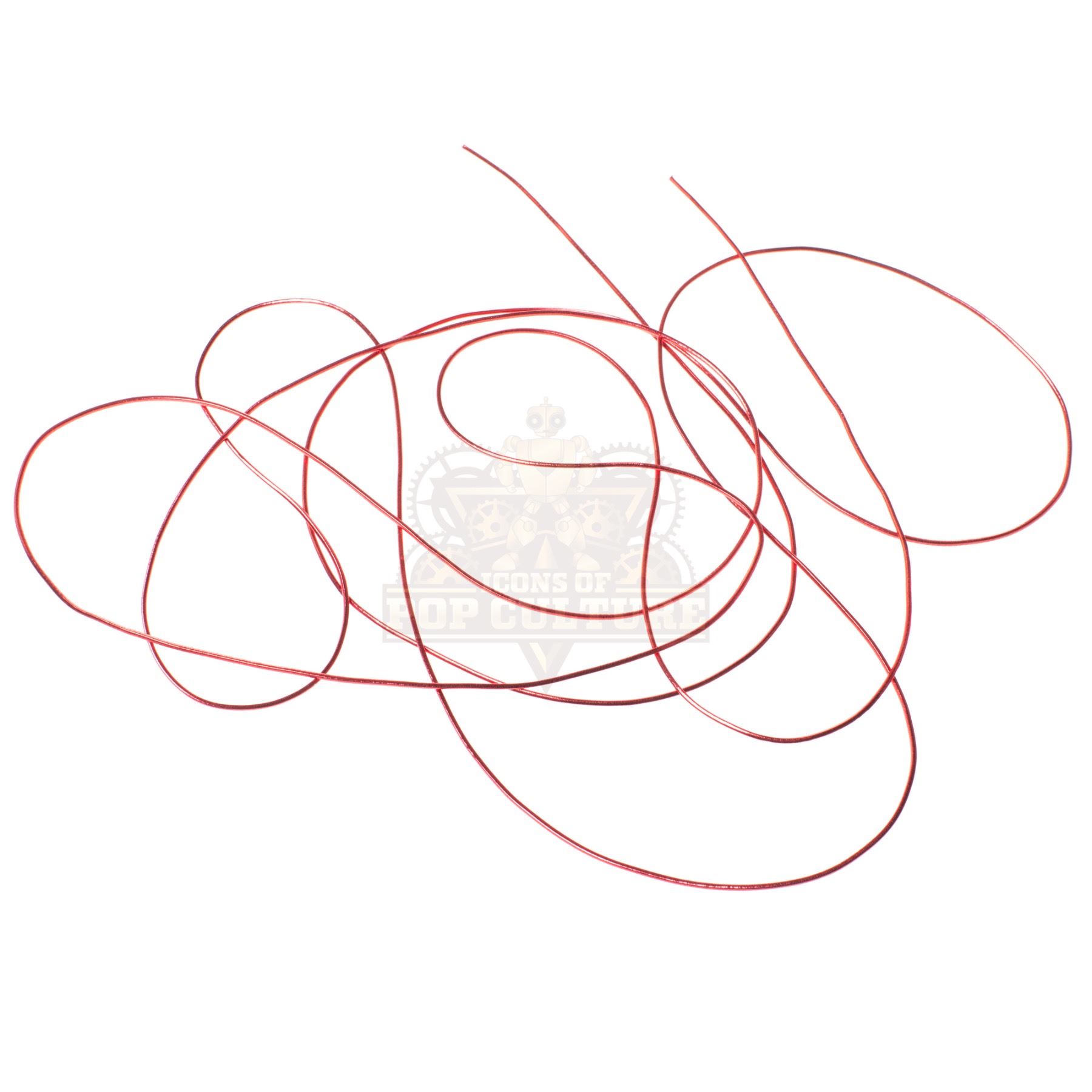 This red twine was acquired by the production use by Jim Carrey as the “Grinch” and Max. The red stretchy twine was used by the Grinch to attach and hold the antler to Max’s head. Measures approximately 125” in length.