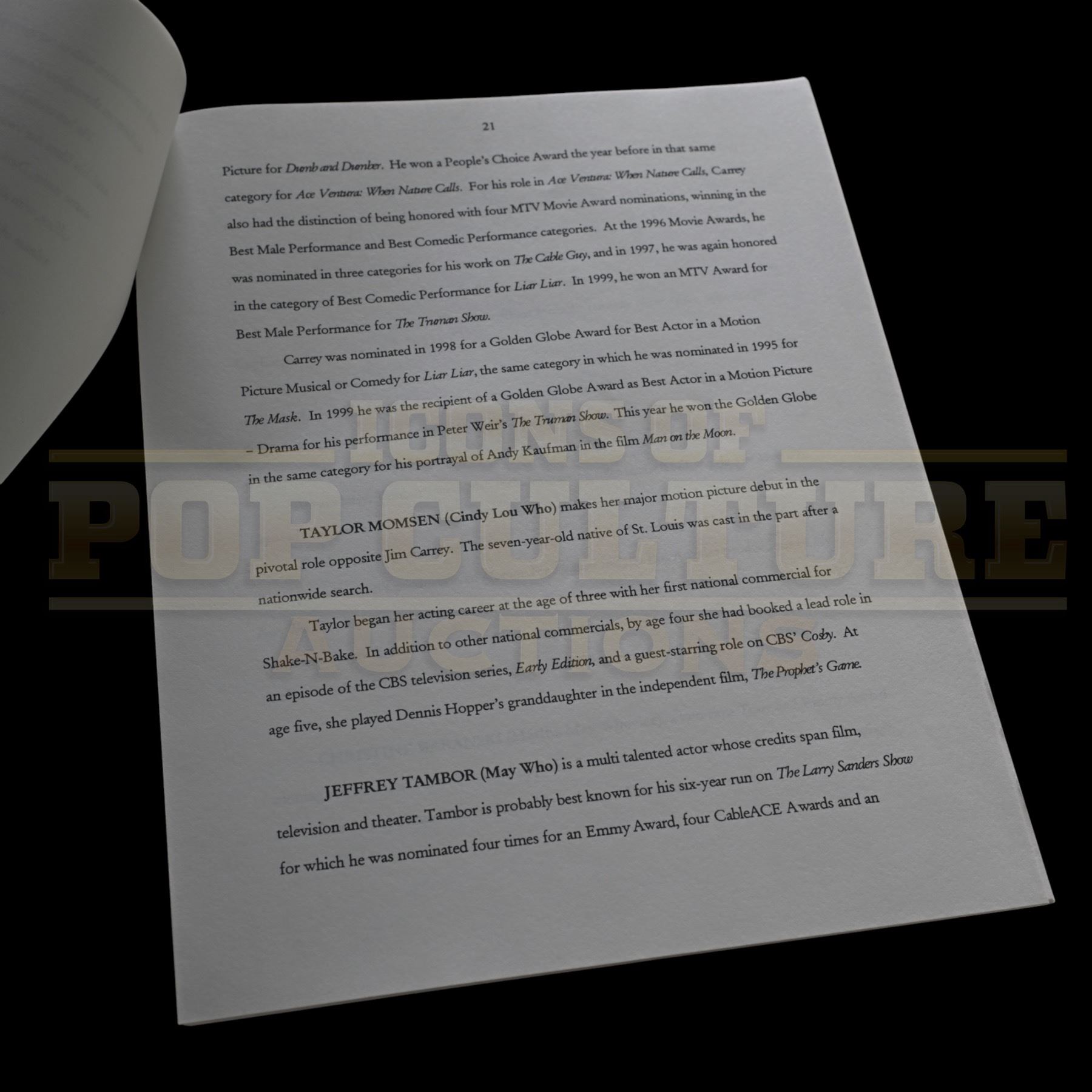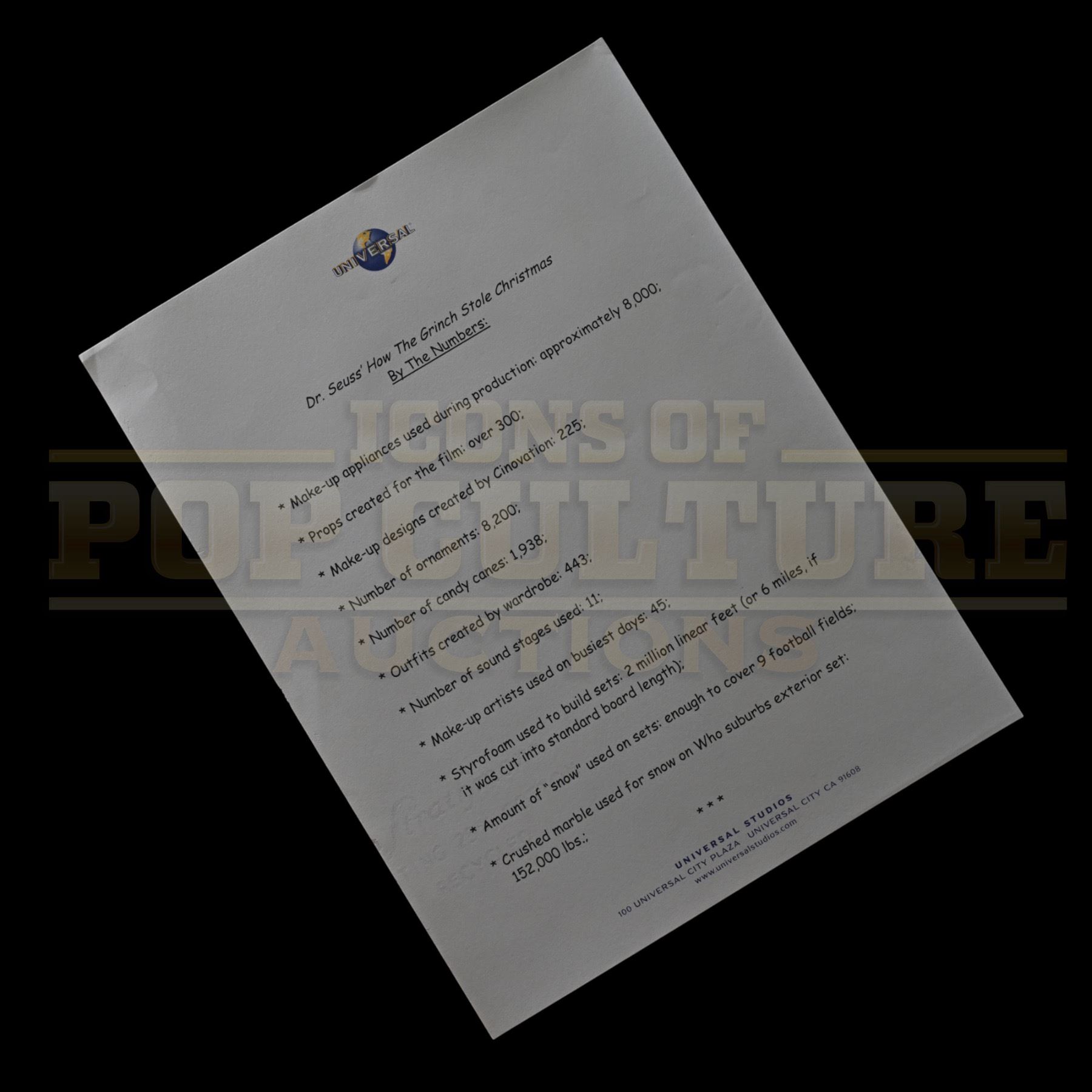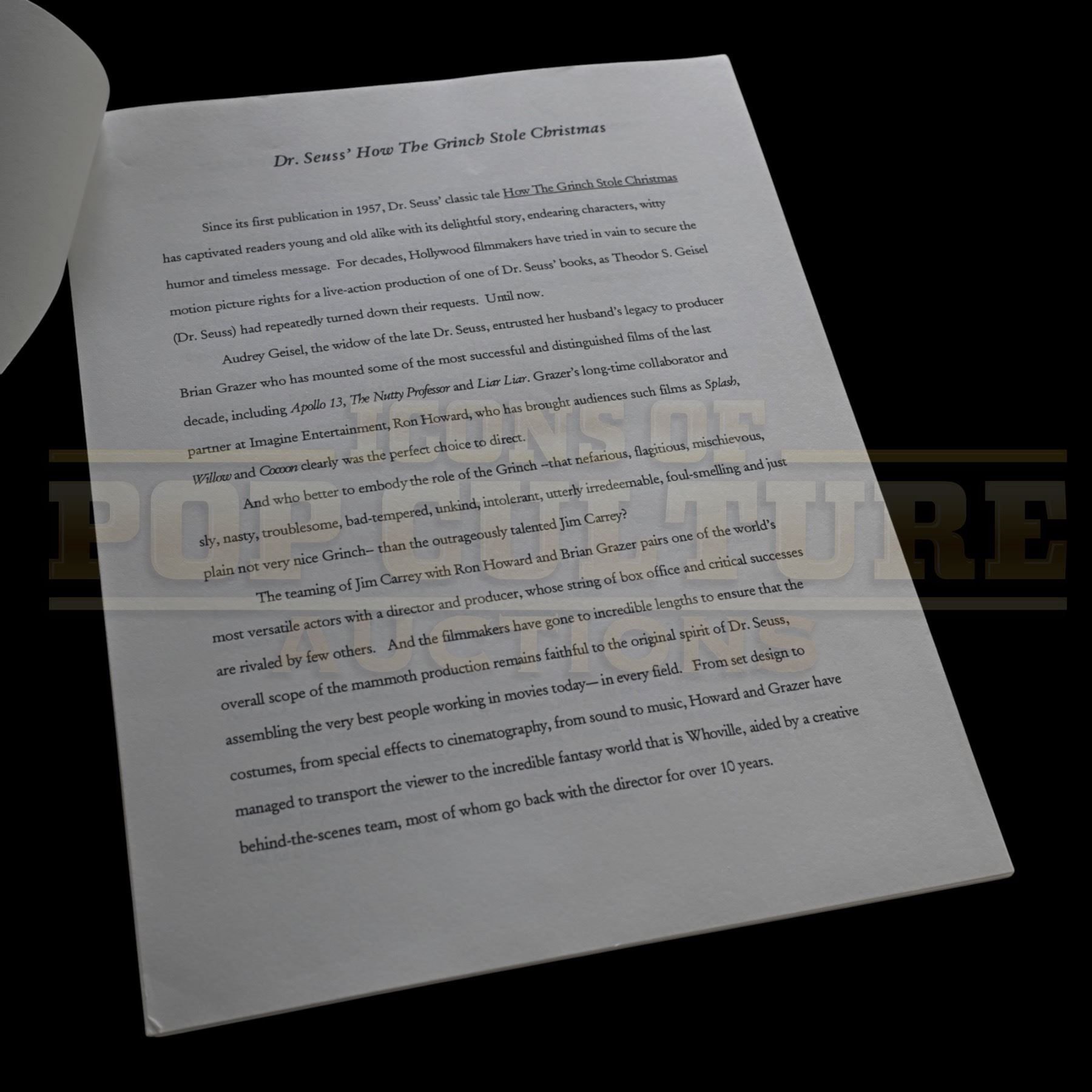 An original studio-issued press kit created to promote Ron Howard’s Dr. Seuss’ How the Grinch Stole Christmas (Universal Pictures, 2000), the beloved live-action adaptation starring Jim Carrey as the iconic Grinch.