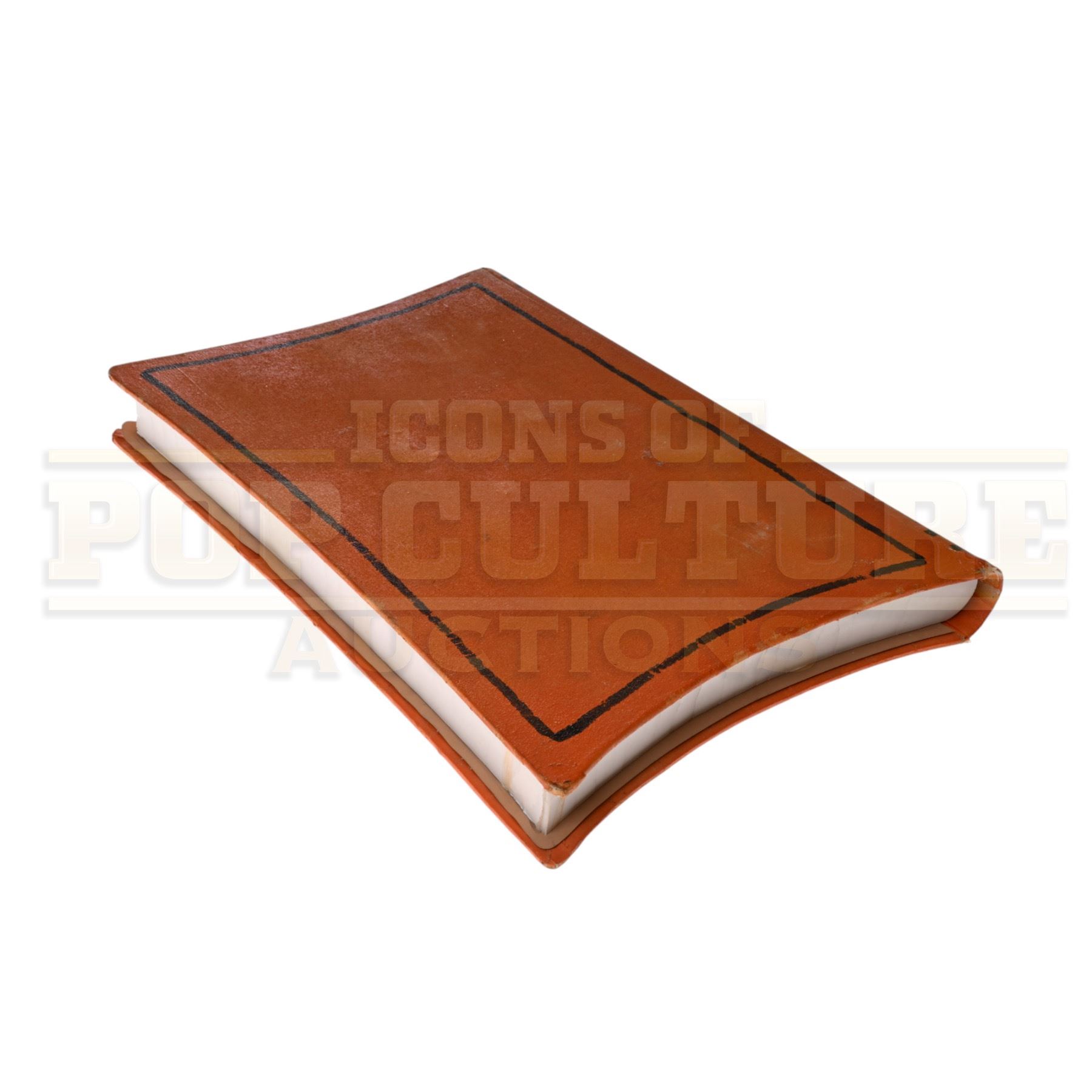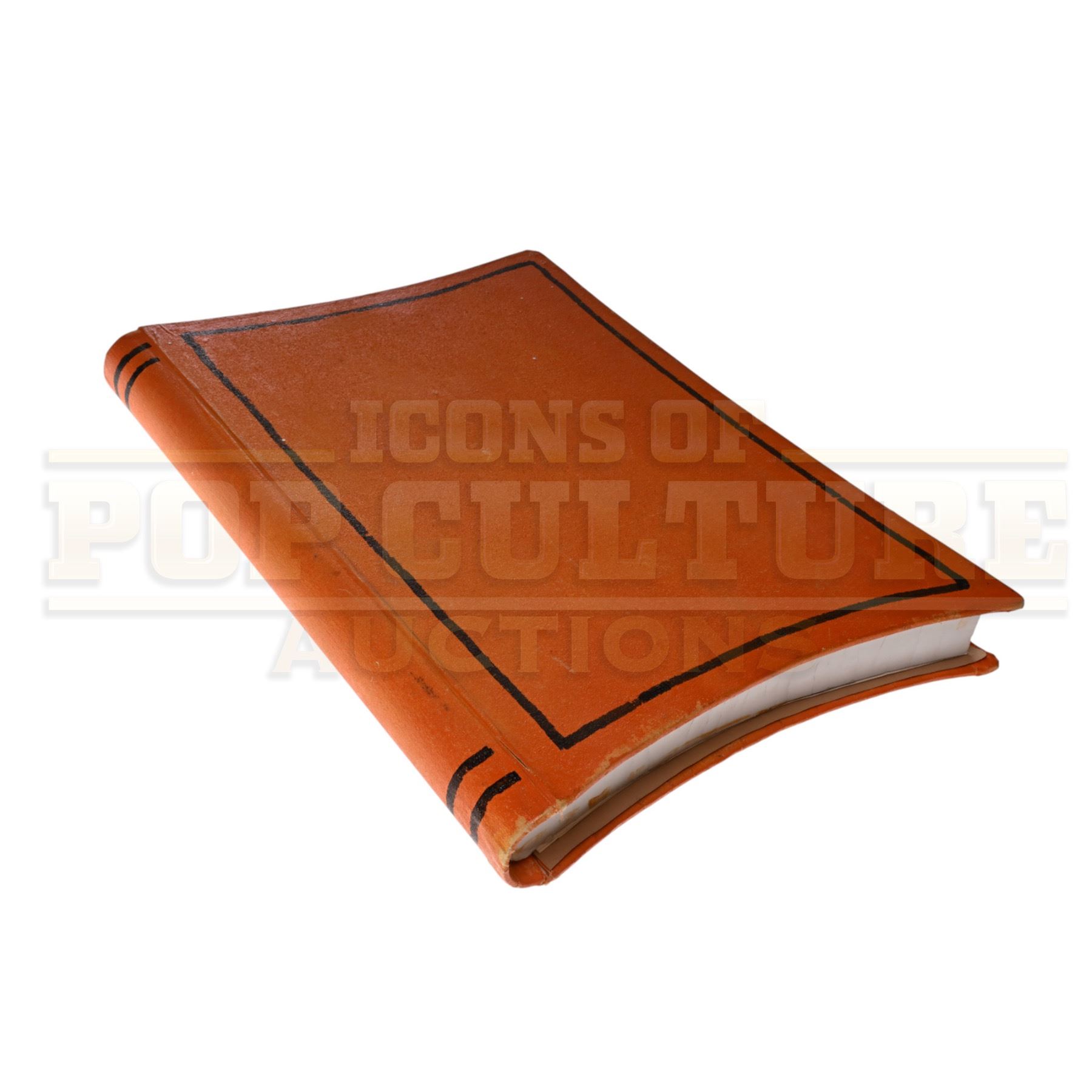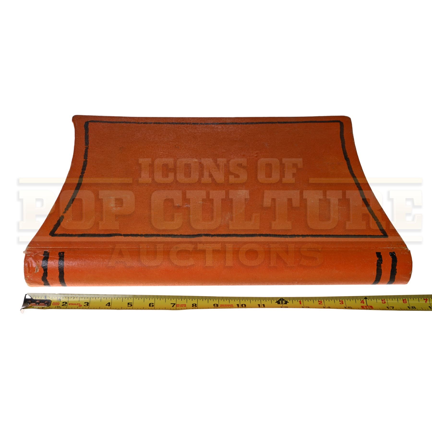 Constructed with a rigid foam cover painted in bright orange and outlined with hand-drawn black borders, the book features white foam “pages” to create the illusion of a real tome while keeping it lightweight for on-set use. Its curved design and bold coloring give it that unmistakable handcrafted Whoville flair seen throughout the film’s Oscar-winning production design.
