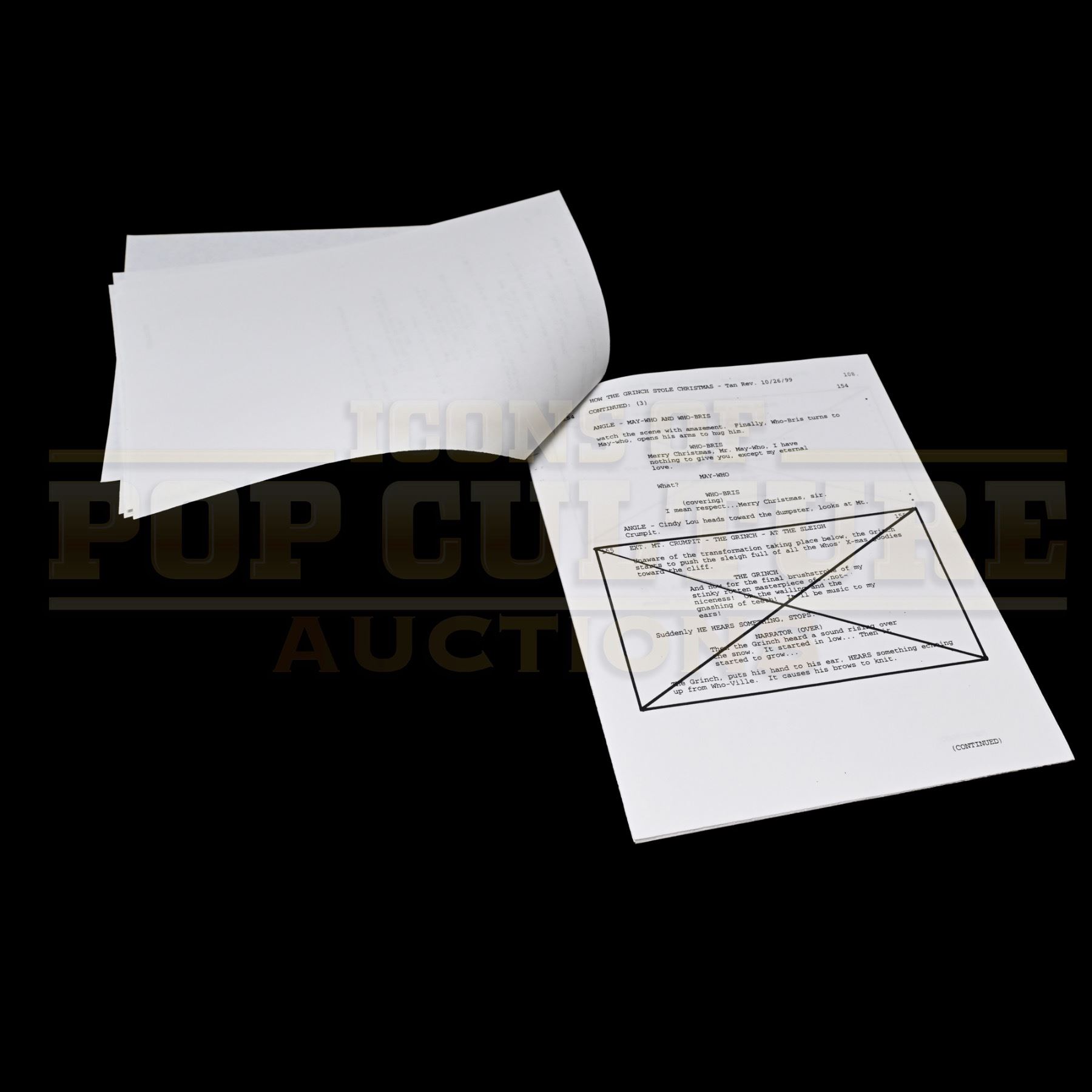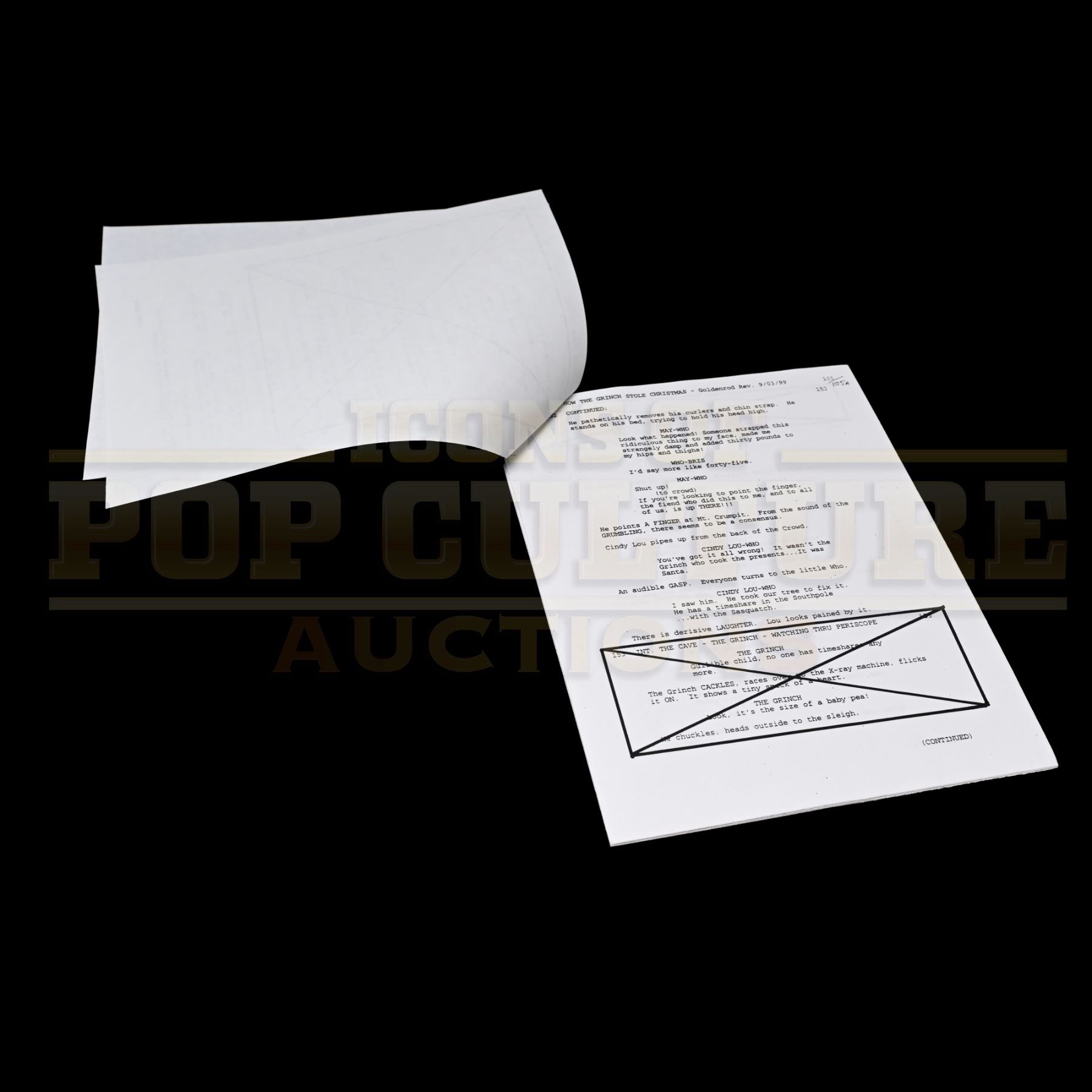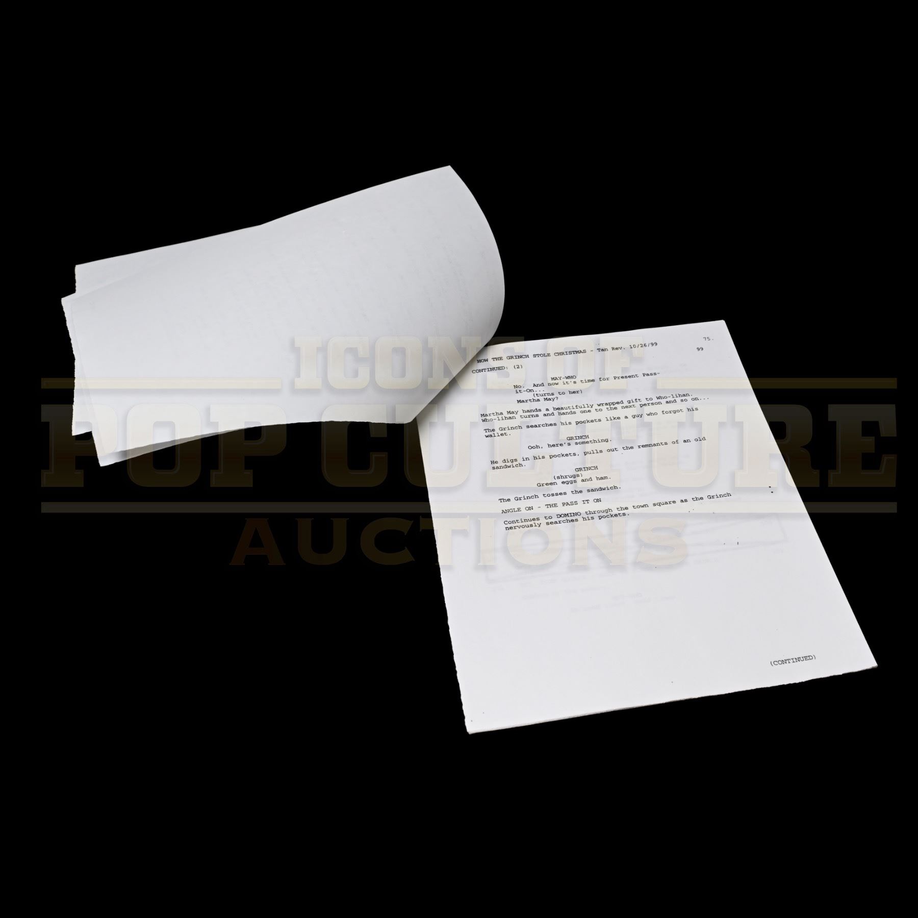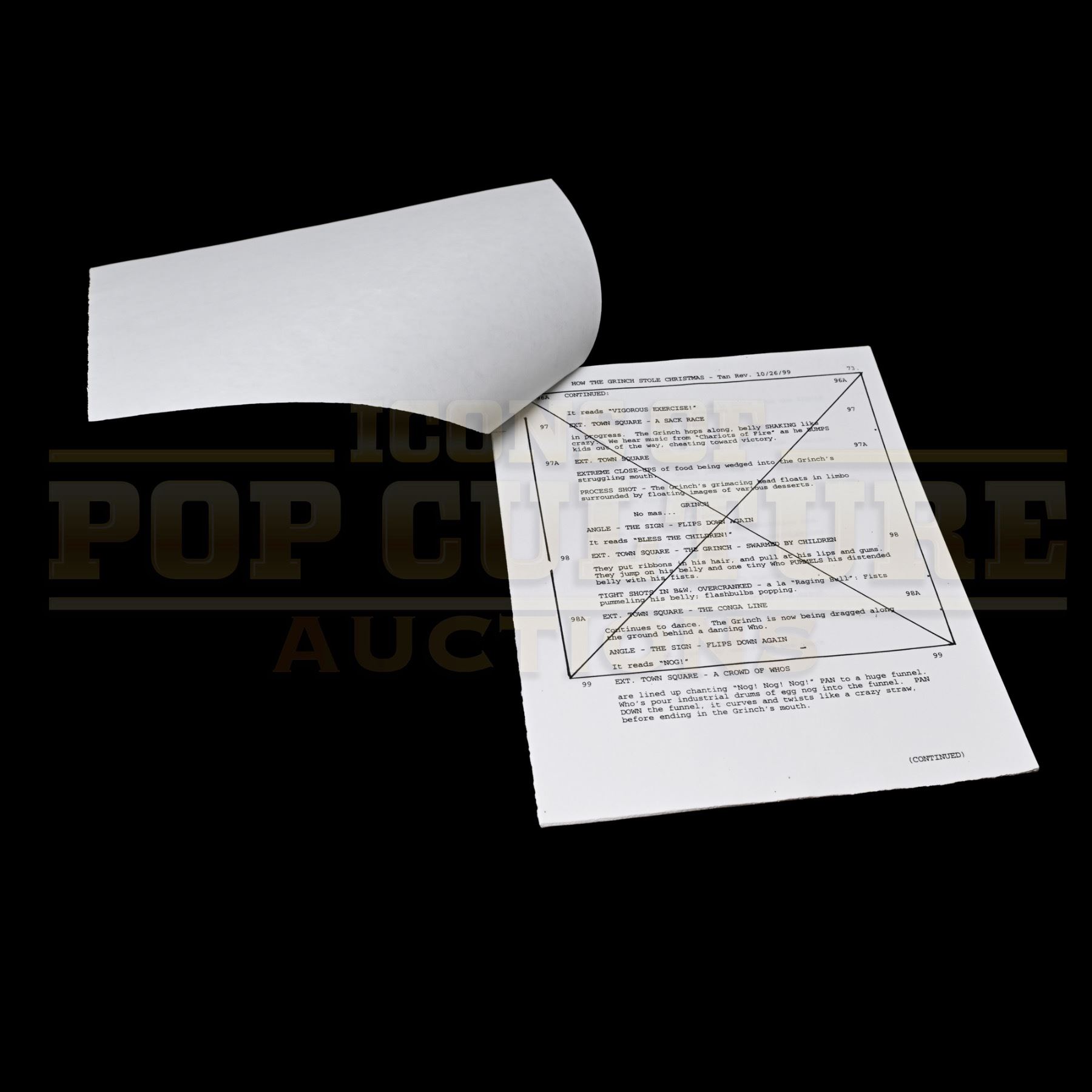 A rare pair of original production-used script sides from Ron Howard’s Dr. Seuss’ How the Grinch Stole Christmas (2000).