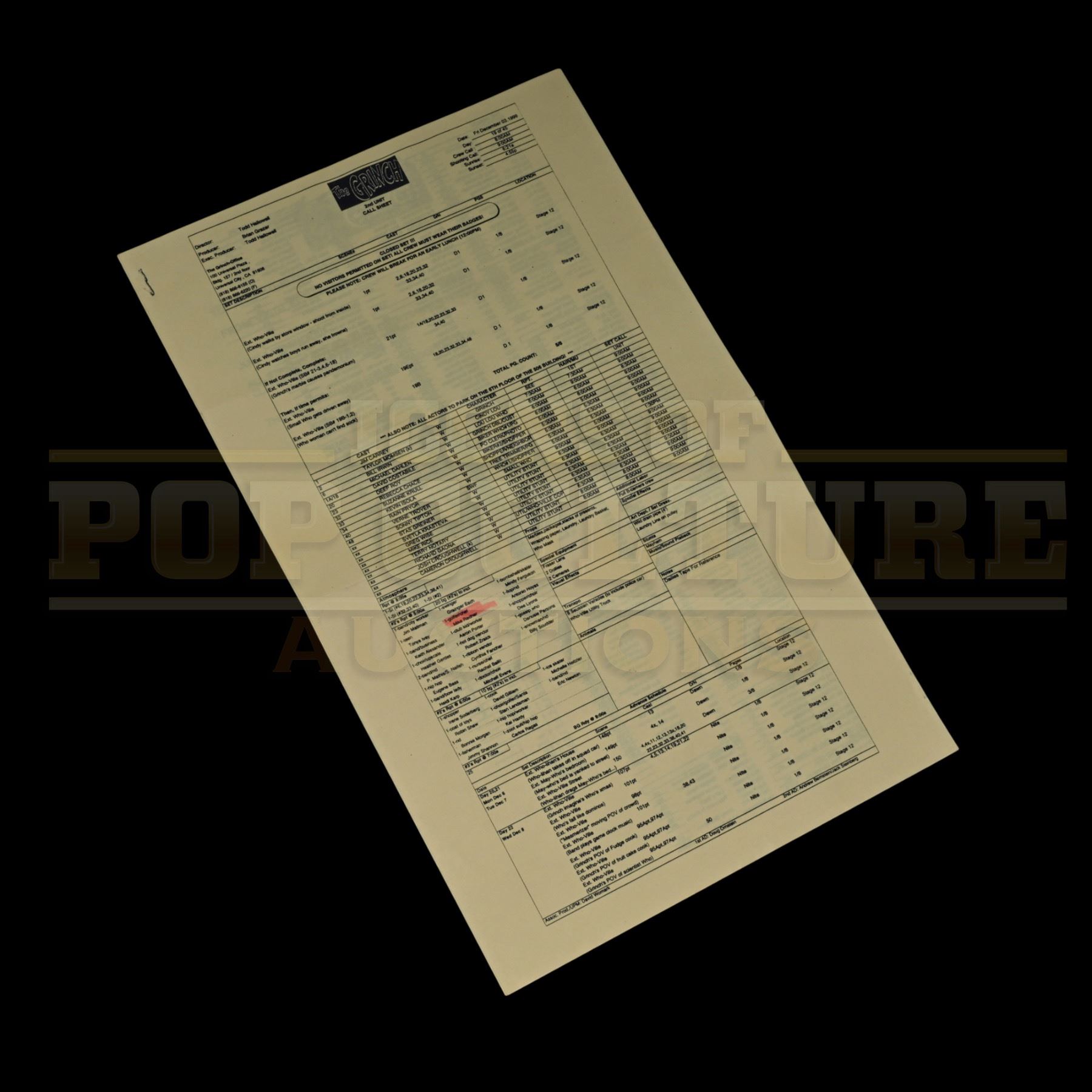 How the Grinch Stole Christmas – Production-Used 2nd Unit Call Sheet - H4-1