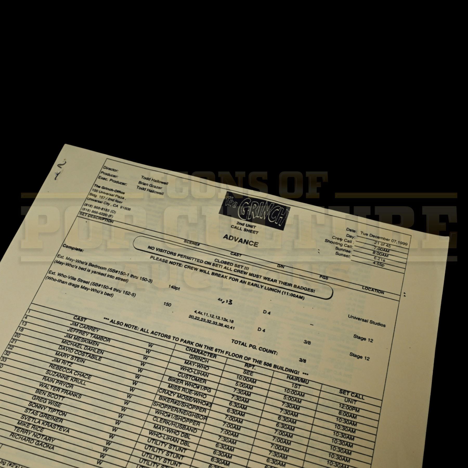How the Grinch Stole Christmas – Production Used Call Sheet - H4-193