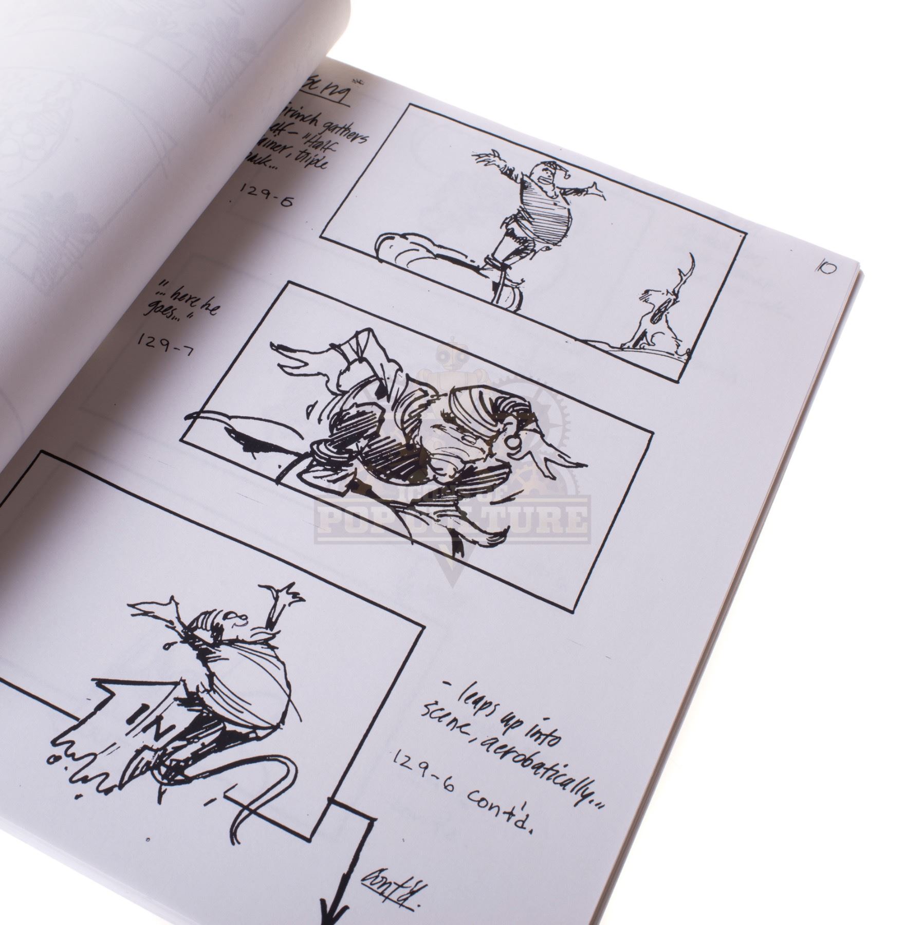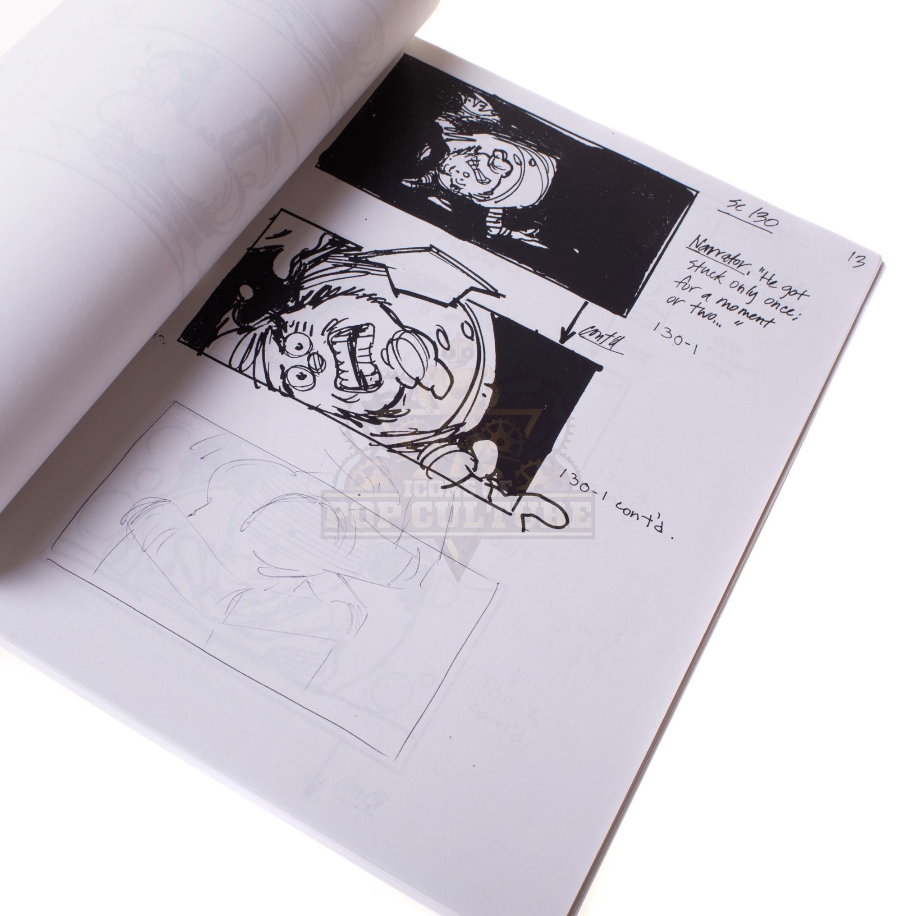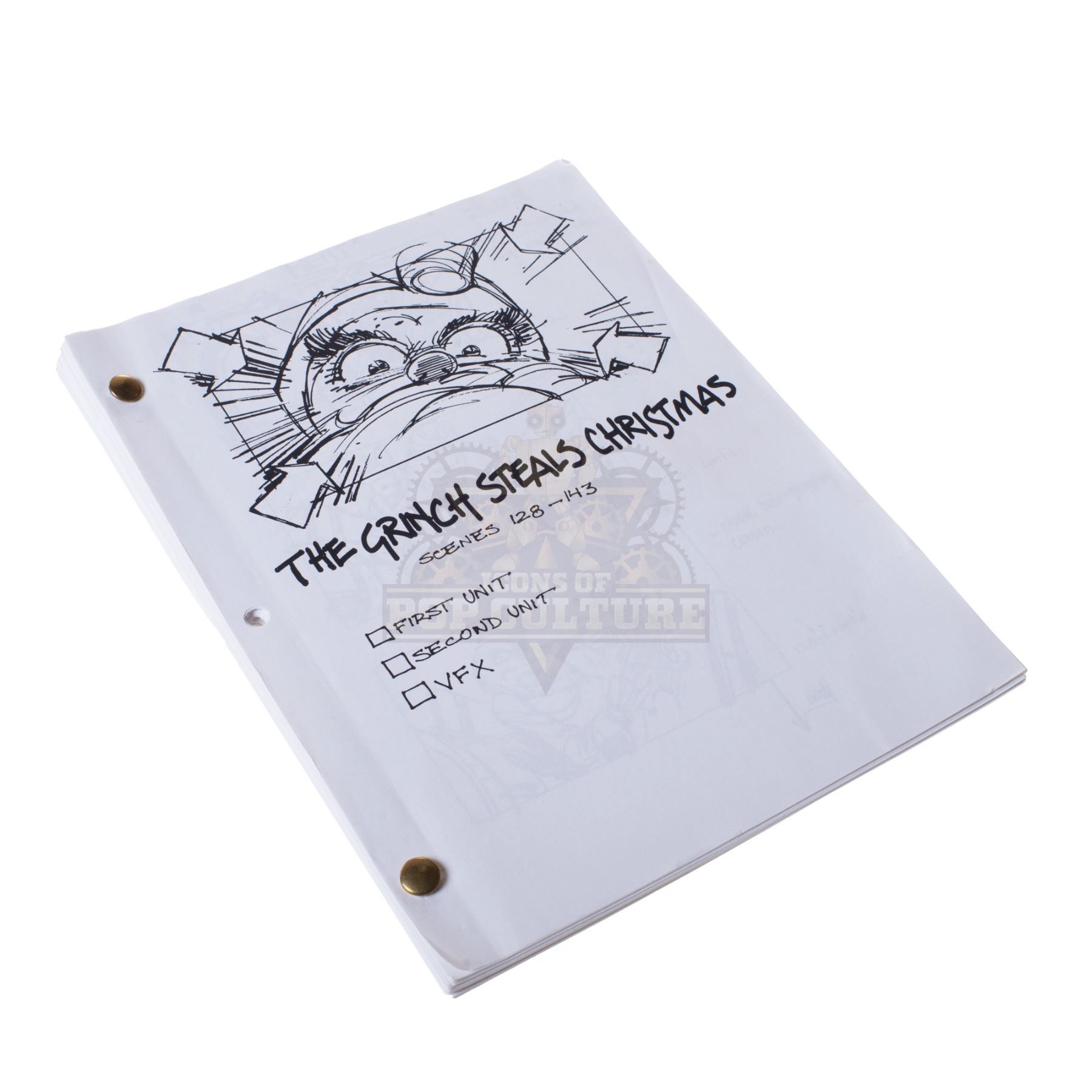 A 126-page production used storyboard script. The script is titled “The Grinch Steals Christmas” and consists of the storyboarded scenes of the Grinch and Max breaking into the various Whoville homes and stealing Christmas. The printed script features hand written notes in pencil on various pages.