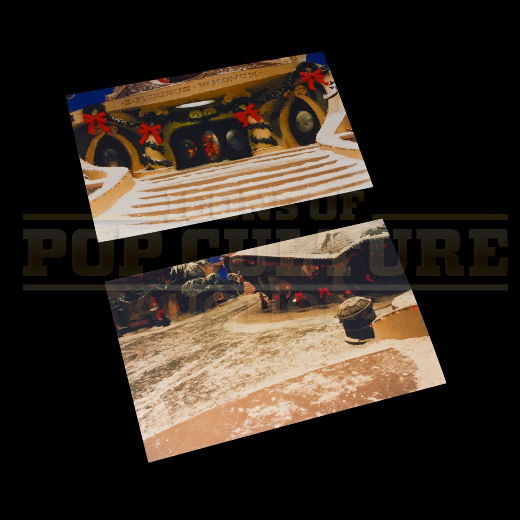 A rare set of two original printed 4” x 6” images of the Whoville town set, featuring City Hall and Farfingle’s Department Store. The images were taken during the film’s production and are unpublished images, offering a rare look at the set design details.