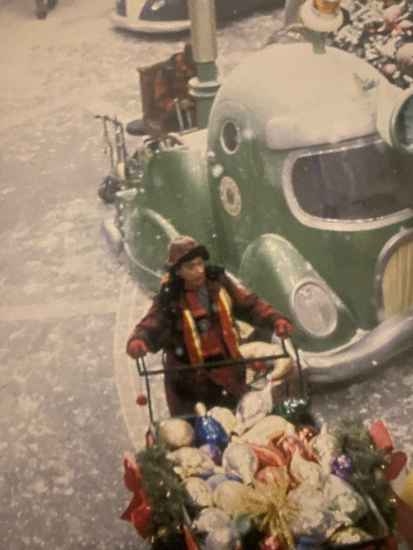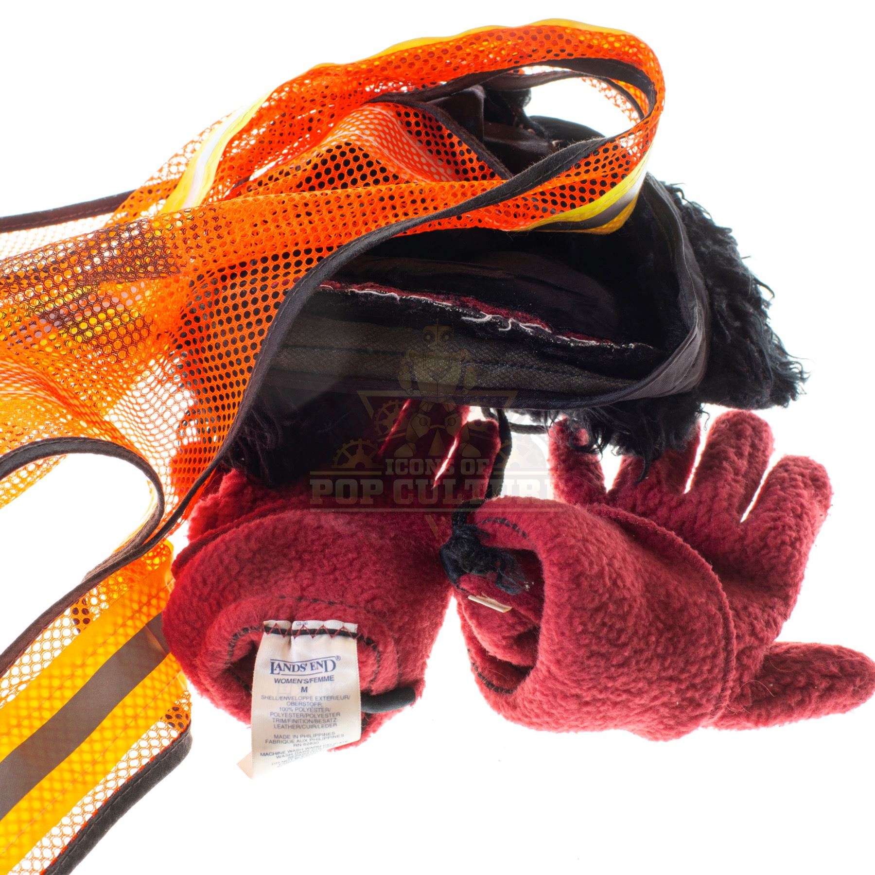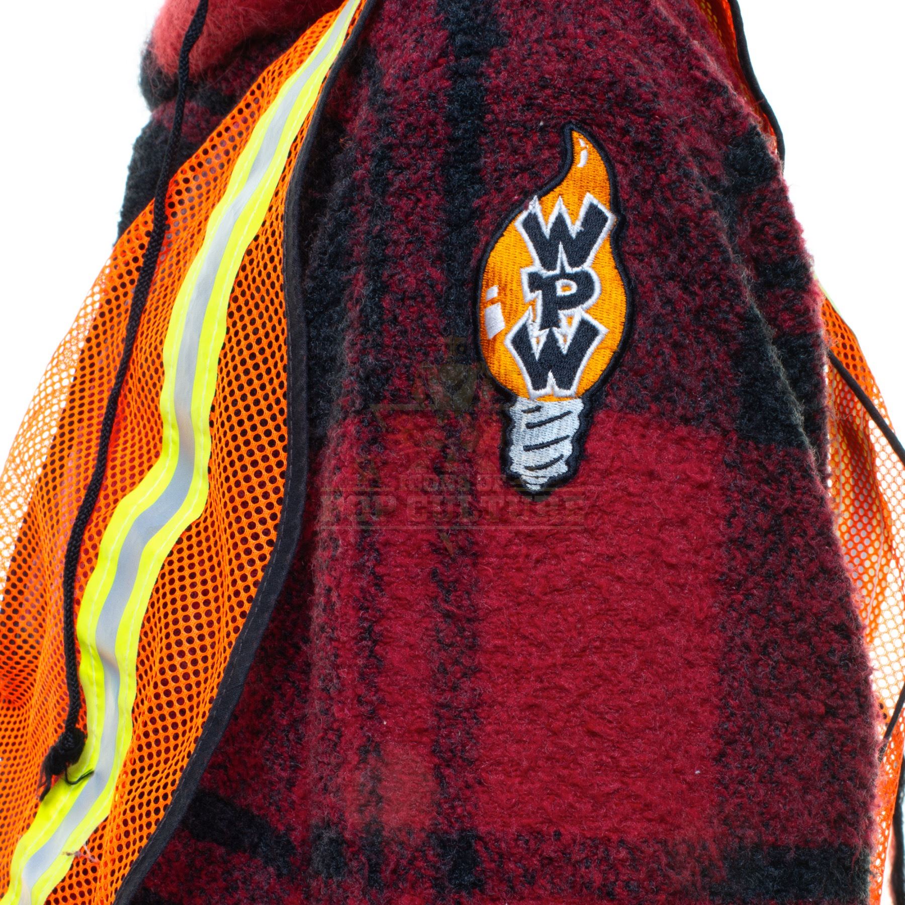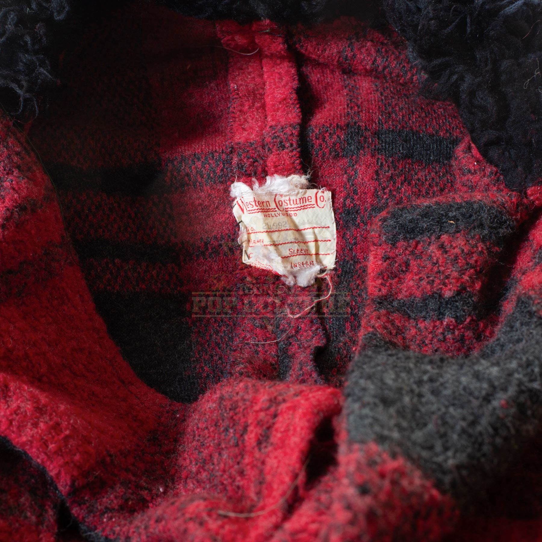 This costume was acquired by the production for use by Kevin Isola as the “Tree Trimmer”. The outfit consists of a vintage plaid jumpsuit with the original “Western Costume” tag still attached inside the collar, a sleeveless blue button front shirt with a cut in the back for use with a wire harness, a plaid hat, an orange and black knit scarf, a mesh safety vest that features “WPW” (Whoville Public Works) in black letters on the back, a pair of black fur covered shoes and a pair of gloves. The costume is seen early in the film as the large Whoville Christmas Tree is being decorated by the “Tree Trimmer” and placing the star atop the tree.