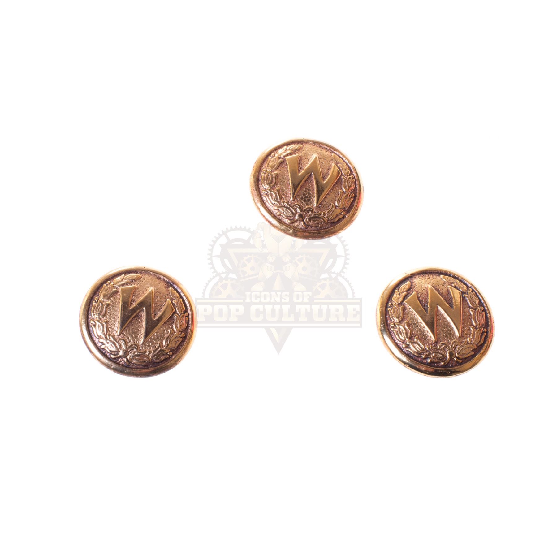 This set of three buttons were custom-made by the production for use on various Who costumes. The gold color buttons are made of metal and feature the iconic Who "W". Each button measures 1” in diameter.