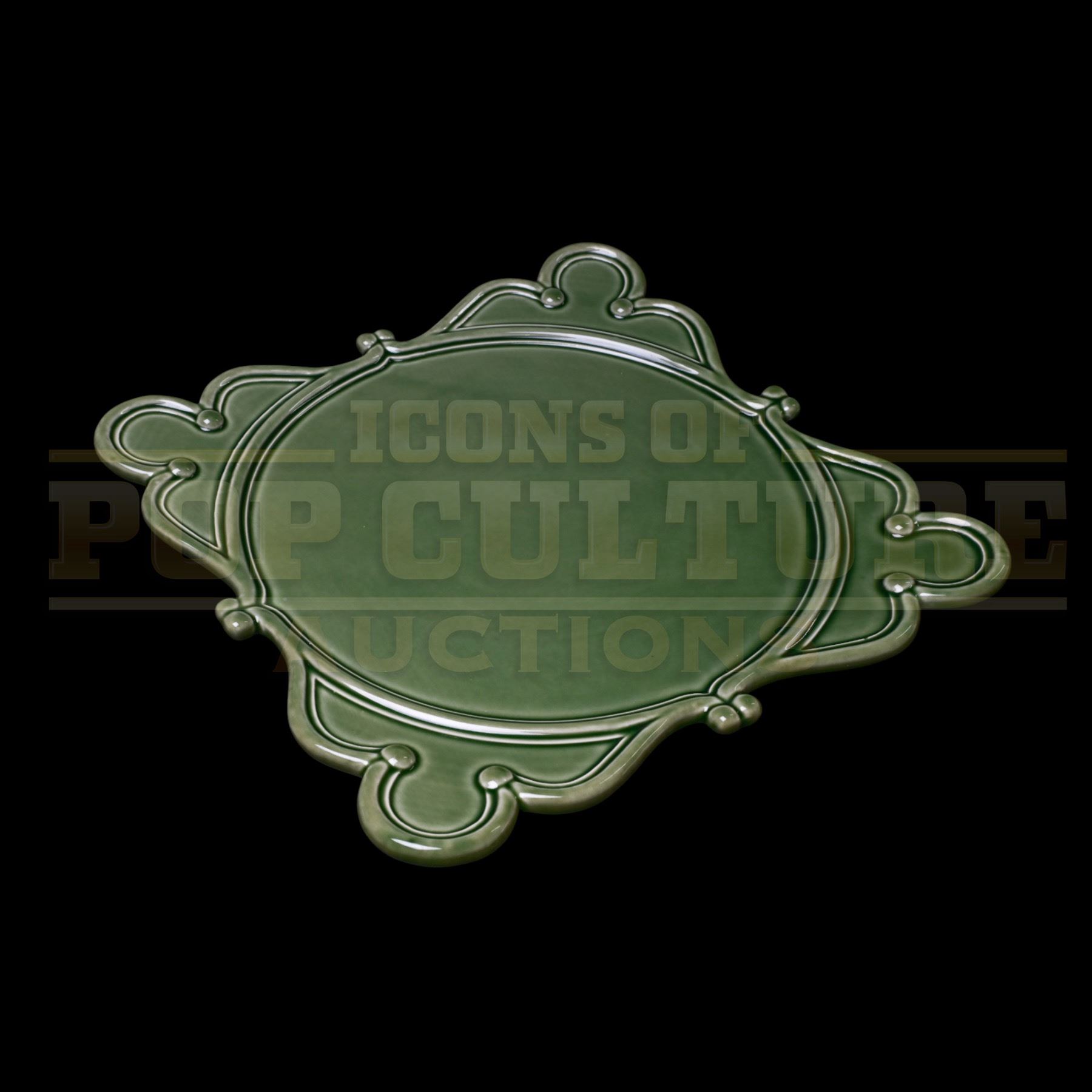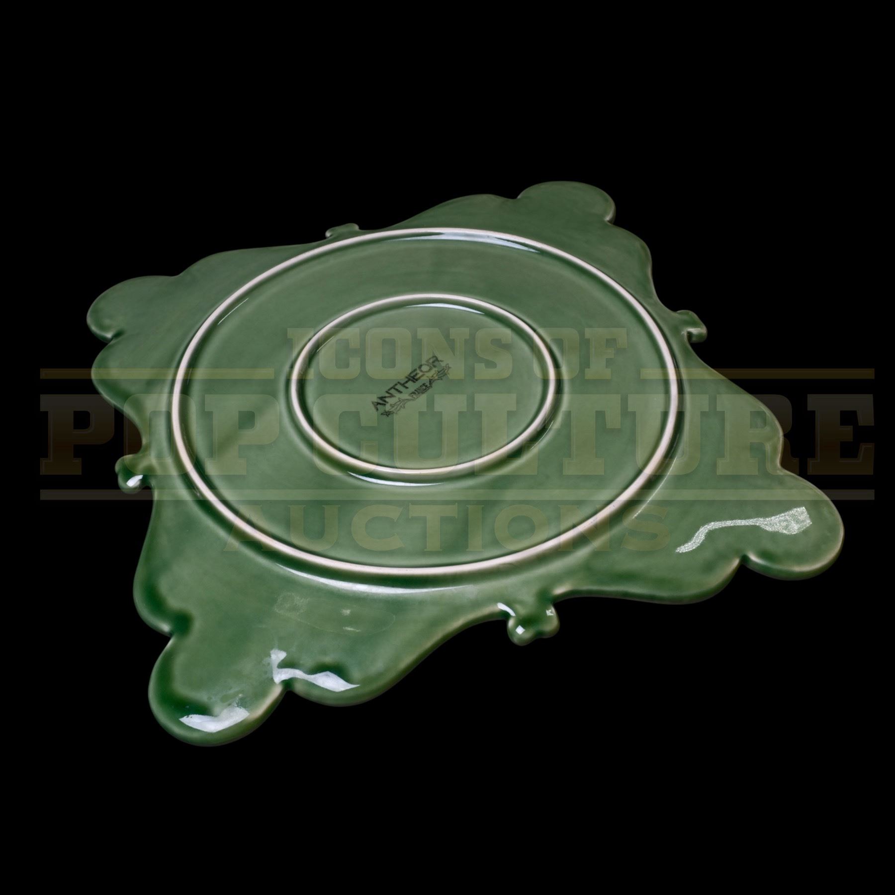 This elegant green ceramic dinner plate was used as set dressing and by various Whoville characters during the lavish Christmas feast scene in How the Grinch Stole Christmas (Universal, 2000), directed by Ron Howard and starring Jim Carrey as the beloved green mischief-maker. The film’s climactic banquet, celebrating unity and joy, featured a whimsical array of unique-designed dishware that perfectly captured the eccentric charm of Dr. Seuss’ world.