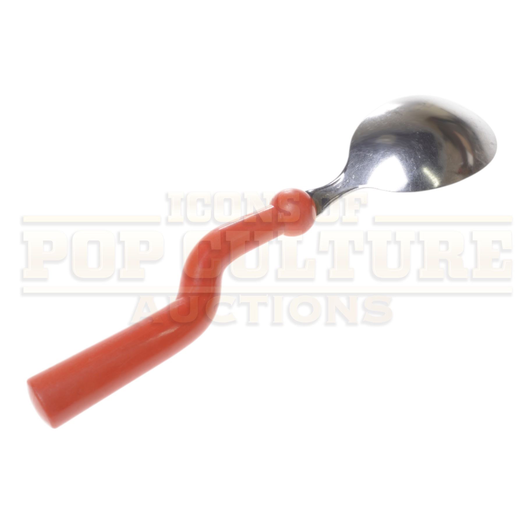This whimsical 7.5" spoon was customized for use on screen in Ron Howard’s "How the Grinch Stole Christmas"(2000). Crafted from metal with a curved, candy-colored plastic handle, the spoon perfectly captures the quirky, Seussian design of Whoville.