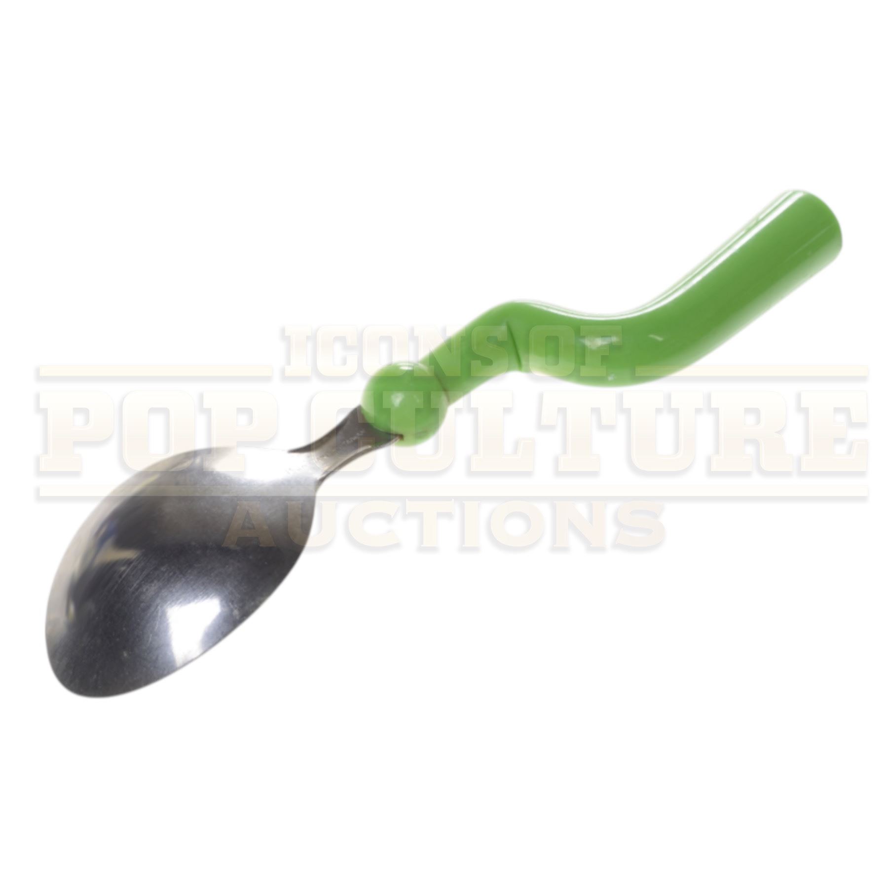 This whimsical 5.25" spoon was customized for use on screen in Ron Howard’s "How the Grinch Stole Christmas"(2000). Crafted from metal with a curved, candy-colored plastic handle, the spoon perfectly captures the quirky, Seussian design of Whoville.