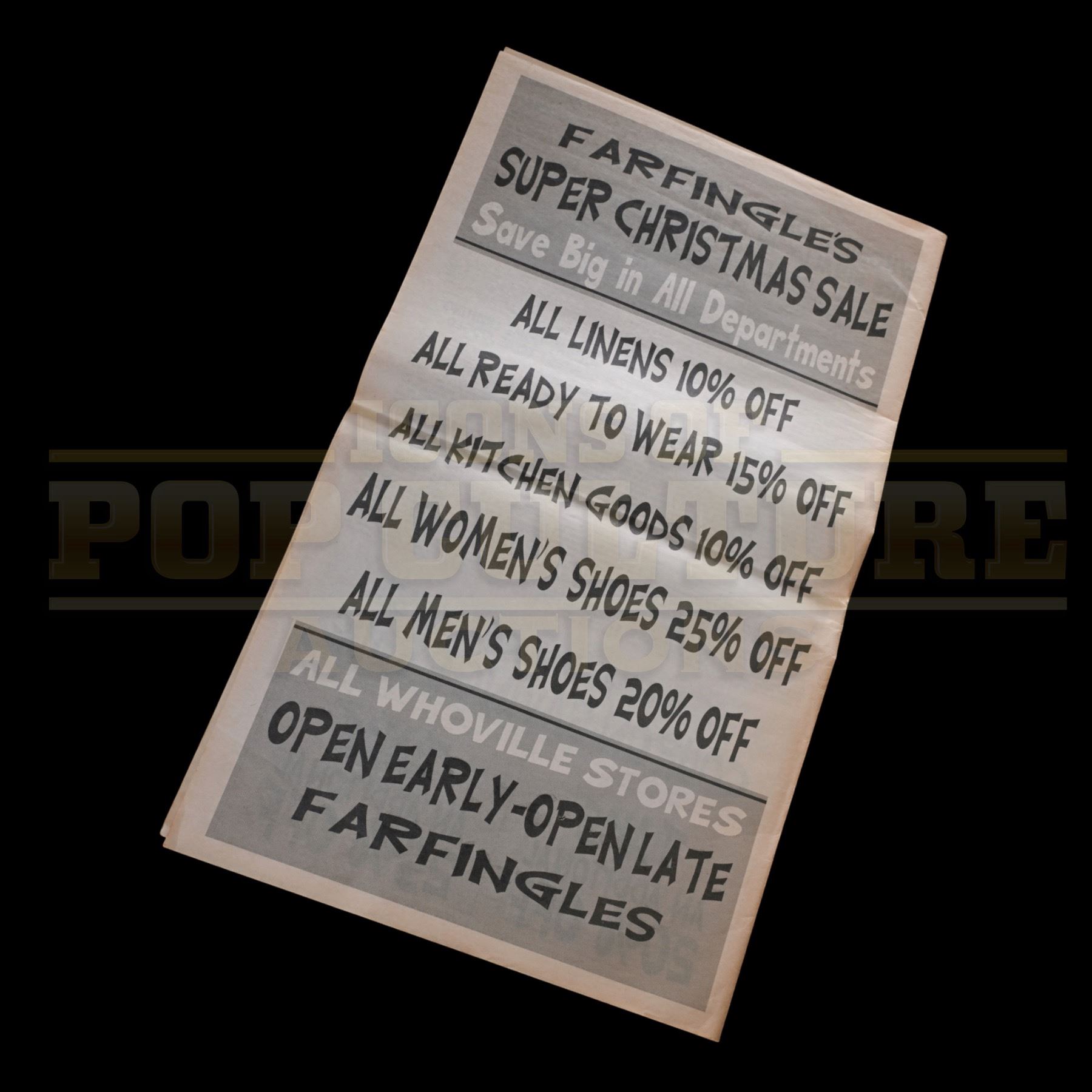 Before the Auction: Bidders are encouraged to send inquiries pertaining to the auction as a whole and/or individual lot. You may also request condition reports. Icons of Pop Culture strongly urges the bidder to resolve any questions PRIOR TO BIDDING.