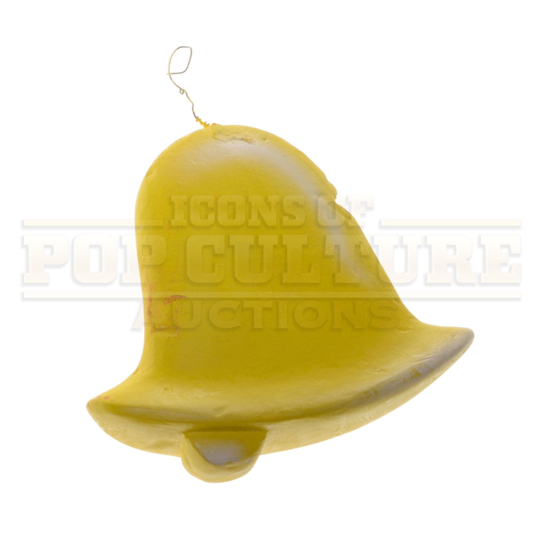 This whimsical yellow bell-shaped ornament was custom-made and used as set dressing during the production of How the Grinch Stole Christmas (Universal, 2000), directed by Ron Howard and starring Jim Carrey as the Grinch.