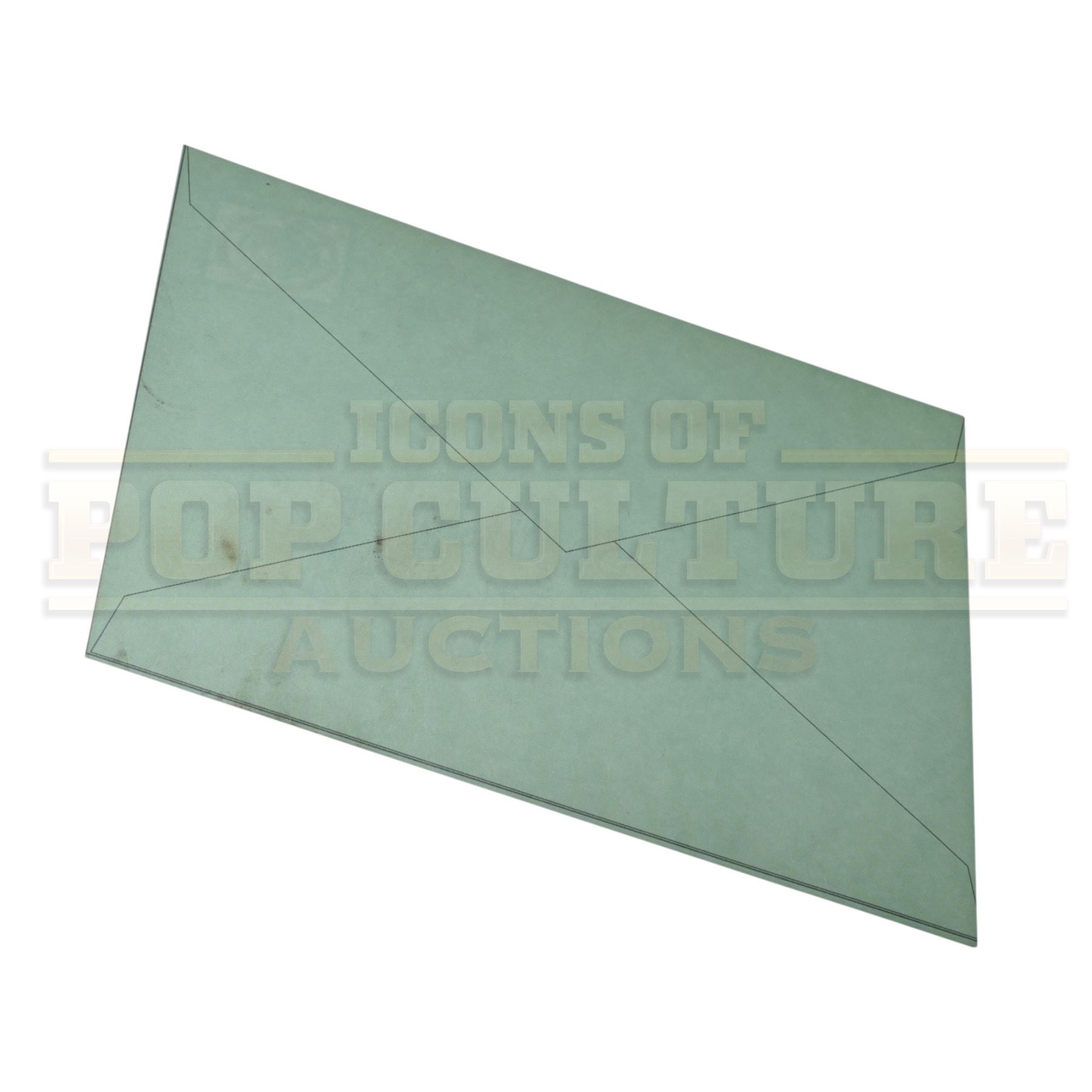 Custom-made for use as set dressing and background mail, pieces like this can be seen scattered throughout the bustling post office. The envelope’s unique green hue and playful design perfectly reflect the handcrafted, imaginative aesthetic that earned the film its Academy Award for Best Makeup and multiple nominations for production design.