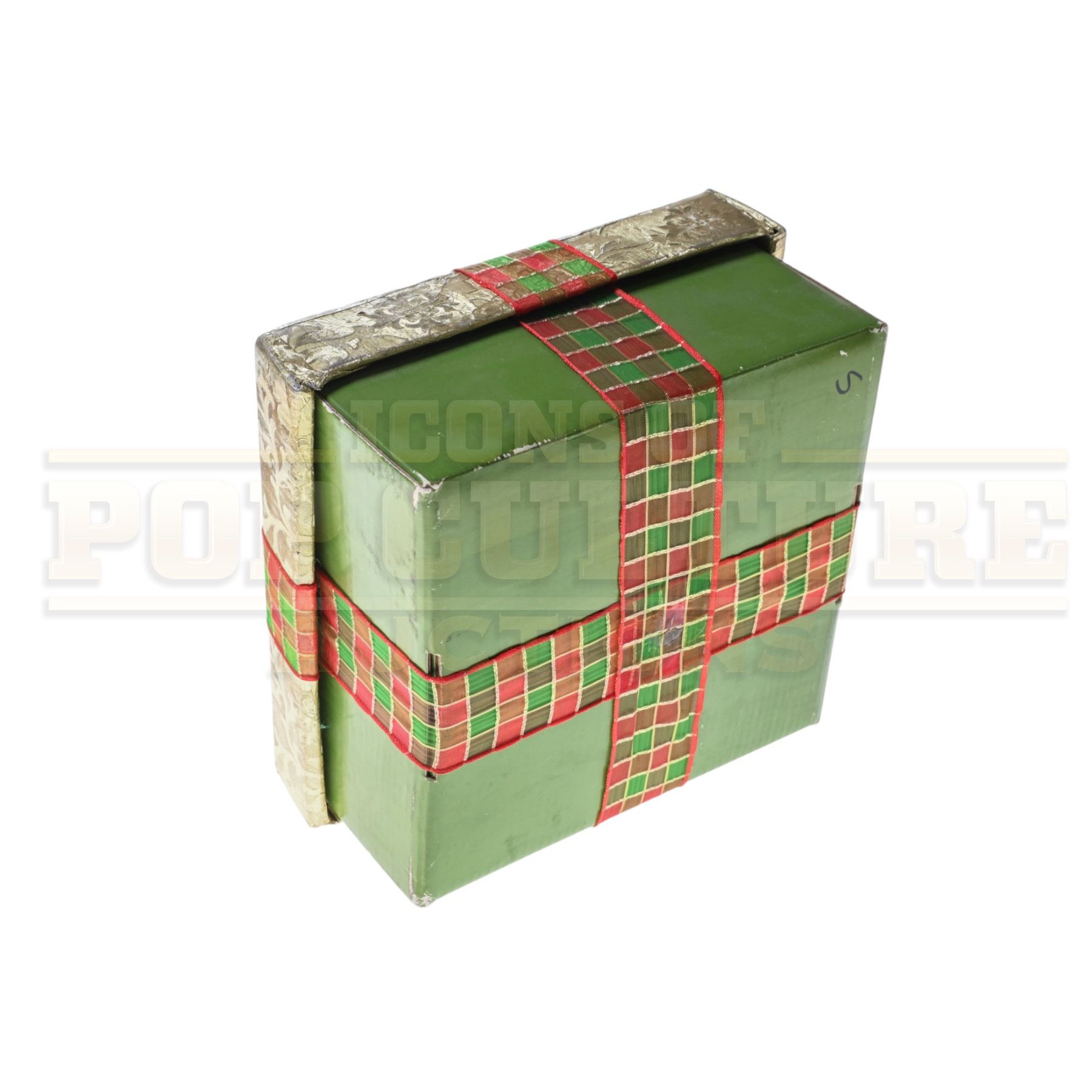 This festive prop gift box was used by various Whoville citizens during the famous “present pass-along” scene in Ron Howard’s How the Grinch Stole Christmas (Universal, 2000), starring Jim Carrey as the iconic Grinch. The scene captures the Whos’ over-the-top holiday spirit as gifts whirl through the town in a dazzling display of color and chaos and this beautifully designed box was part of that magical moment.
