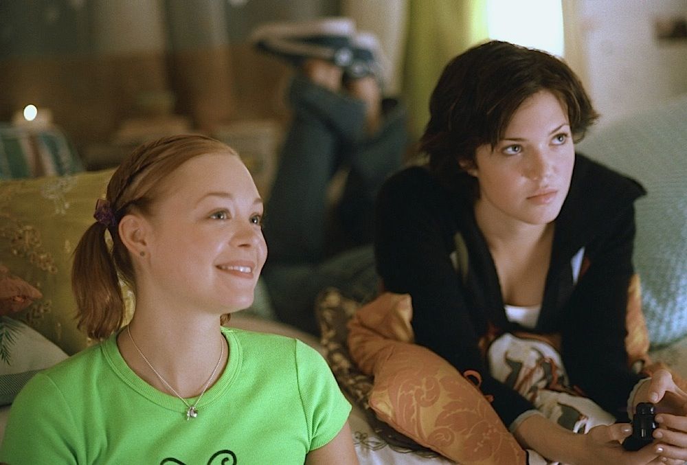 (New Line Cinema, 2003) This outfit was acquired by the production for use by Alexandra Holden as "Scarlett Smith". The outfit consists of a size medium purple jeans jacket, a size medium green t-shirt with ladybug graphic, a pair of size 30 jeans, a leather belt with metal stud design and a pair of Via Spiga shoes. Wear from use is present. Included with the outfit is a production used costume tag that details the change and scene numbers used.