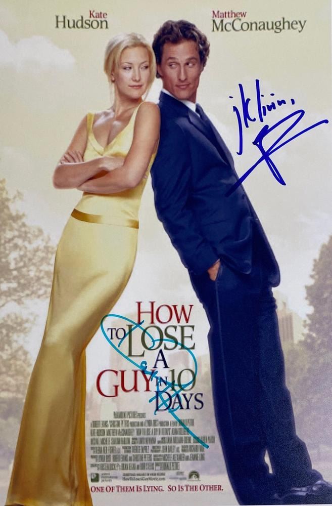 How to Lose a Guy in 10 Days cast facsimile signed photo autographed by Matthew McConaughey and Kate Hudson. 8x10 inches. This item is a reprint of an original autograph
