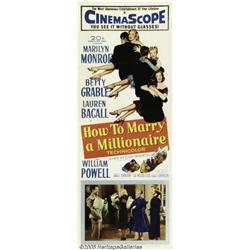 <B>How to Marry a Millionaire (20th Century Fox, 1953)</B></I> Insert (14" X 36"). Marilyn Monroe, Betty Grable and Lauren Bacall, three of Hollywood's top leading ladies, were cast in this tale of three women who want one thing in life, to get married to millionaires, and somehow find true love along the way. It became one of Fox's most popular films of 1953 and helped establish that Monroe could carry a film in a lead role. The insert doesn't become available too often and this example is in wonderful condition with only four tiny tears in the right border and one, one-inch tear, in the left. The corners have some minor creases. Very Fine.