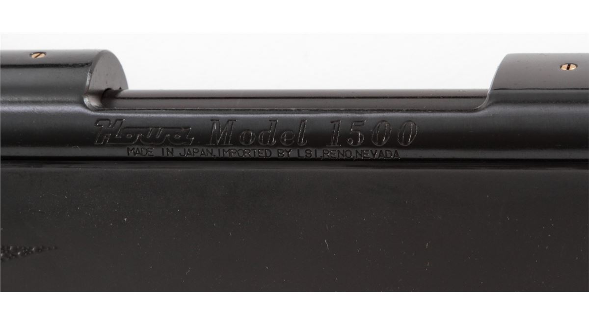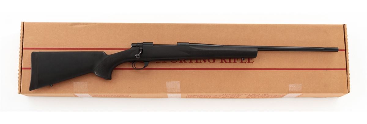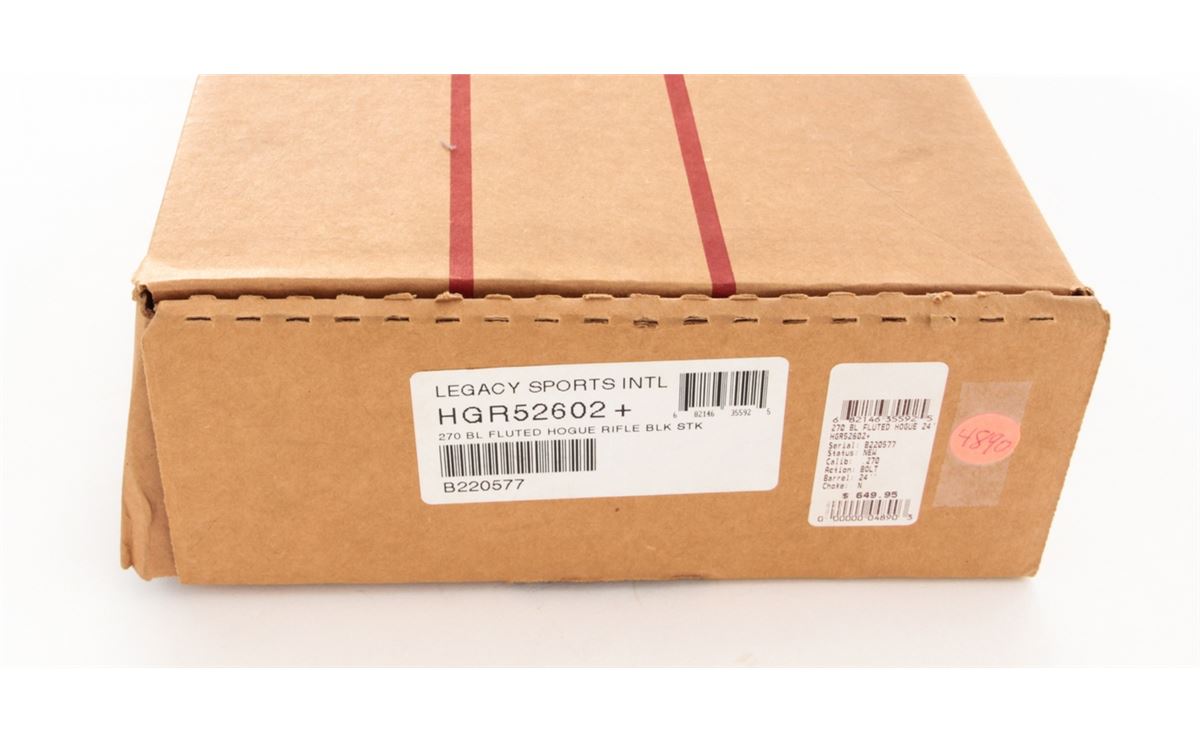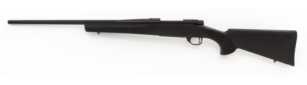 Howa Model 1500 Bolt Action Rifle, #B220577, .270 WCF cal., 22'' fluted barrel, blue finish, partially textured pistol-grip composite stock and Hogue recoil pad, in box with matching end label and owner's manual. Condition is excellent, remaining near new and unfired. Stock with light to some just moderate overall marks from handling. Retails @ $649.95. Est.: $350-$500. (Modern) (Field Time)