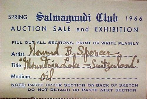 Howard B. Spencer oil on canvas "Mountain Lake - Switzerland" signed lower right; listed American 1871-1967; label on reverse "Salmagundi Club"; image measures 20" x 24" framed (no visible defects)