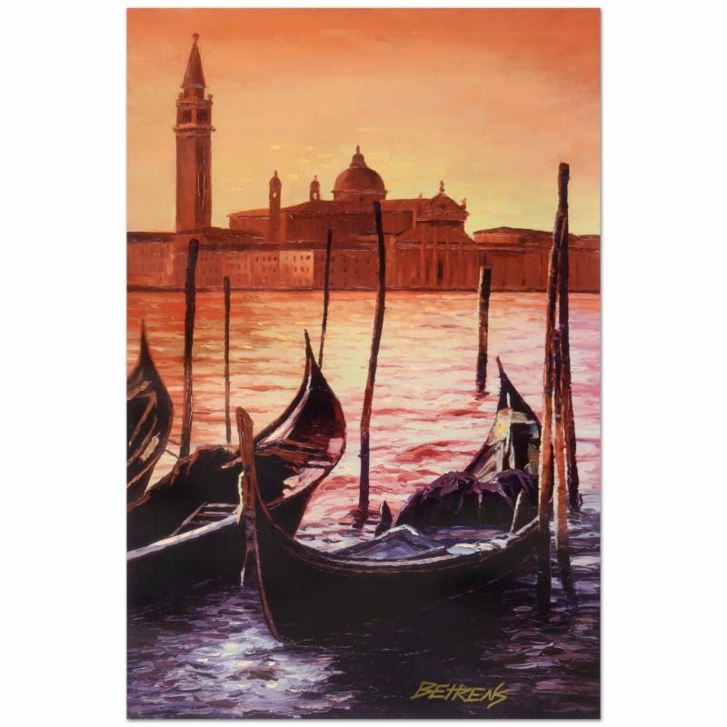 "Sunset on the Grand Canal 4" is a limited edition hand embellished giclee on canvas by Howard Behrens (1933-2014), numbered and bearing the artist's authorized signature. Includes Certificate of Authenticity! Measures approx. 16" x 24" (image). Retail Price $995.00. PRICE INCUDES FREE SHIPPING IN THE U.S. - SHIPPING WILL BE ADDED TO YOUR INVOICE FOR ALL BUYERS OUTSIDE OF THE U.S.