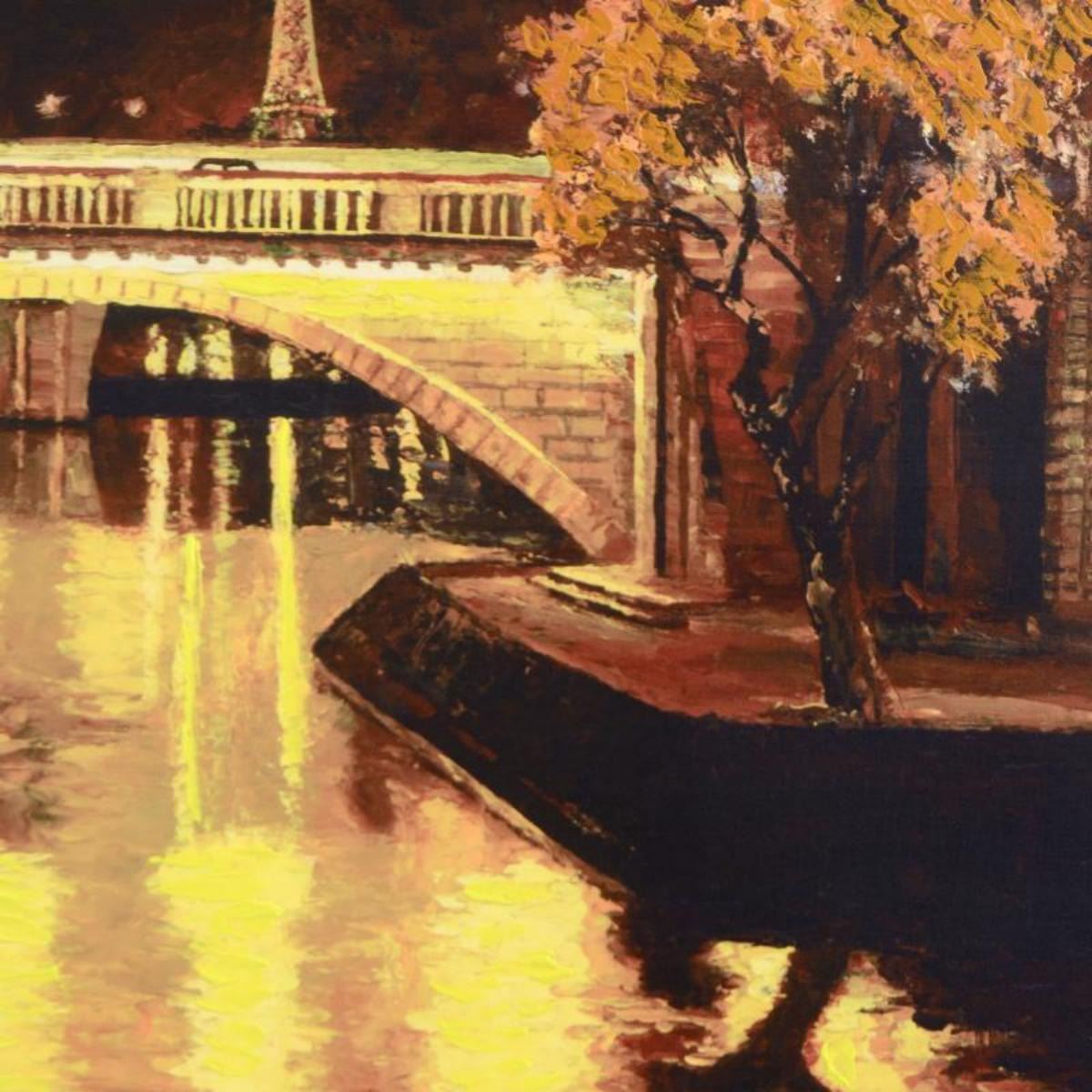 "Twilight on the Seine, I" is a limited edition hand embellished giclee on canvas by Howard Behrens (1933-2014), numbered and hand signed by the artist. Includes Certificate of Authenticity! Measures approx. 17" x 27" (image). Reference #: 213923.