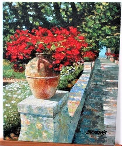 HOWARD BEHRENS-VILLA CIMBRONE This particular piece is from the 2010 "Five Carat Diamond" collection and was a special edition for an Art Connoisseur cruise. The Five Carat Diamond Collection is considered by far the top and highest value of any of the Behrens embellished Giclees. Please note that other listings with the same title may have not come from this particular and highly sought after edition. Intensely texturized/embellished, almost looks 3-D. It is almost indistinguishable from the original oil (except for the number) Medium: Hand Signed Limited Edition Heavily Embellished Giclee on Stretched Canvas Dimensions: 22 x 18 inches NOTE: Edition number may differ from the one pictured.