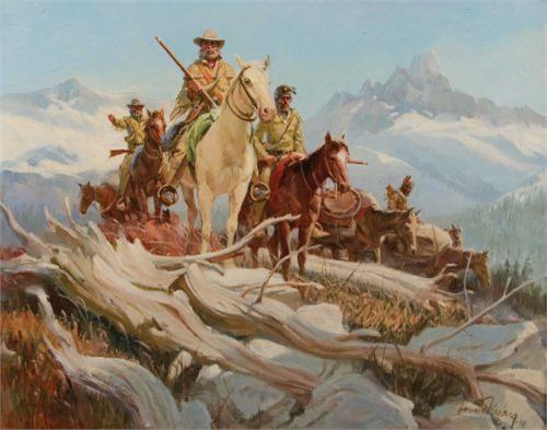 Howard Forsberg (1918-2002). 24" x 30". Oil on Board. "Search for Beaver". Signed LR. Dated '78. (est $2,000-3,000)