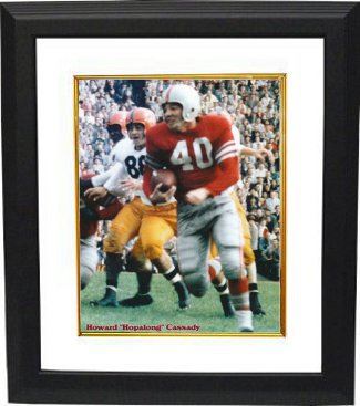 Hopalong Cassady played for the Ohio State Buckeyes from 1952-55. During his college career, he scored 37 touchdowns in 36 games. He also played defensive back; a pass was never completed on him in his four years at the university. In 1955, Cassady won the Heisman Trophy (by the largest margin at the time), the Maxwell Award, and was named the Associated Press Athlete of the Year. This is a Color unautographed 8x10 Photo of Ohio State Buckeyes Heisman Trophy Winner Hopalong Cassady. Custom White Mat and Premium Black Frame as shown.