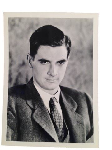 Original headshot photo of Howard Hughes when he was producing motion pictures (5"x7"). Includes a copy of the letter of provenance which is a letter to a Karen from a writer and Howard Hughes obsessionist named Arelo who gifted her a collection of photos and autographs of Howard Hughes based on her interest in collecting.