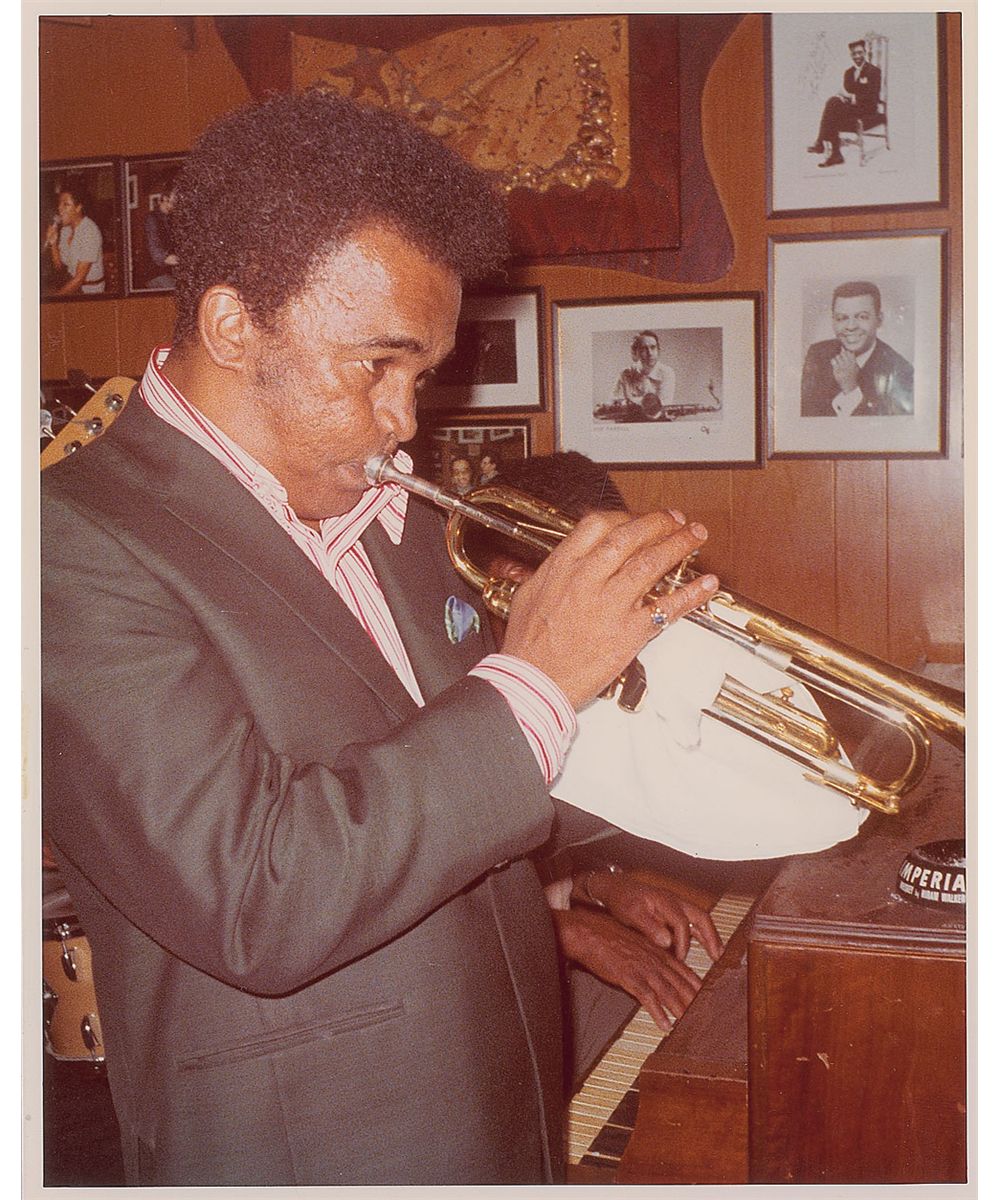 ALS, in pencil, signed “How,” one page, 5.5 x 8.5, no date. Short letter to Hunter Hancock on the back cover of a Pan-American Records catalog. In part: “I told one of the girls to tell you that I’d be a little late. Evidently, she didn‘t tell you…Line-up for the concert.” McGhee goes on to list eight musicians for the concert including Coleman Hawkins, Corky Corcoran, and Roy Eldridge. In fine condition, with a paperclip impression to top left corner. Accompanied by an unsigned color glossy 8 x 10 photo of McGhee performing.