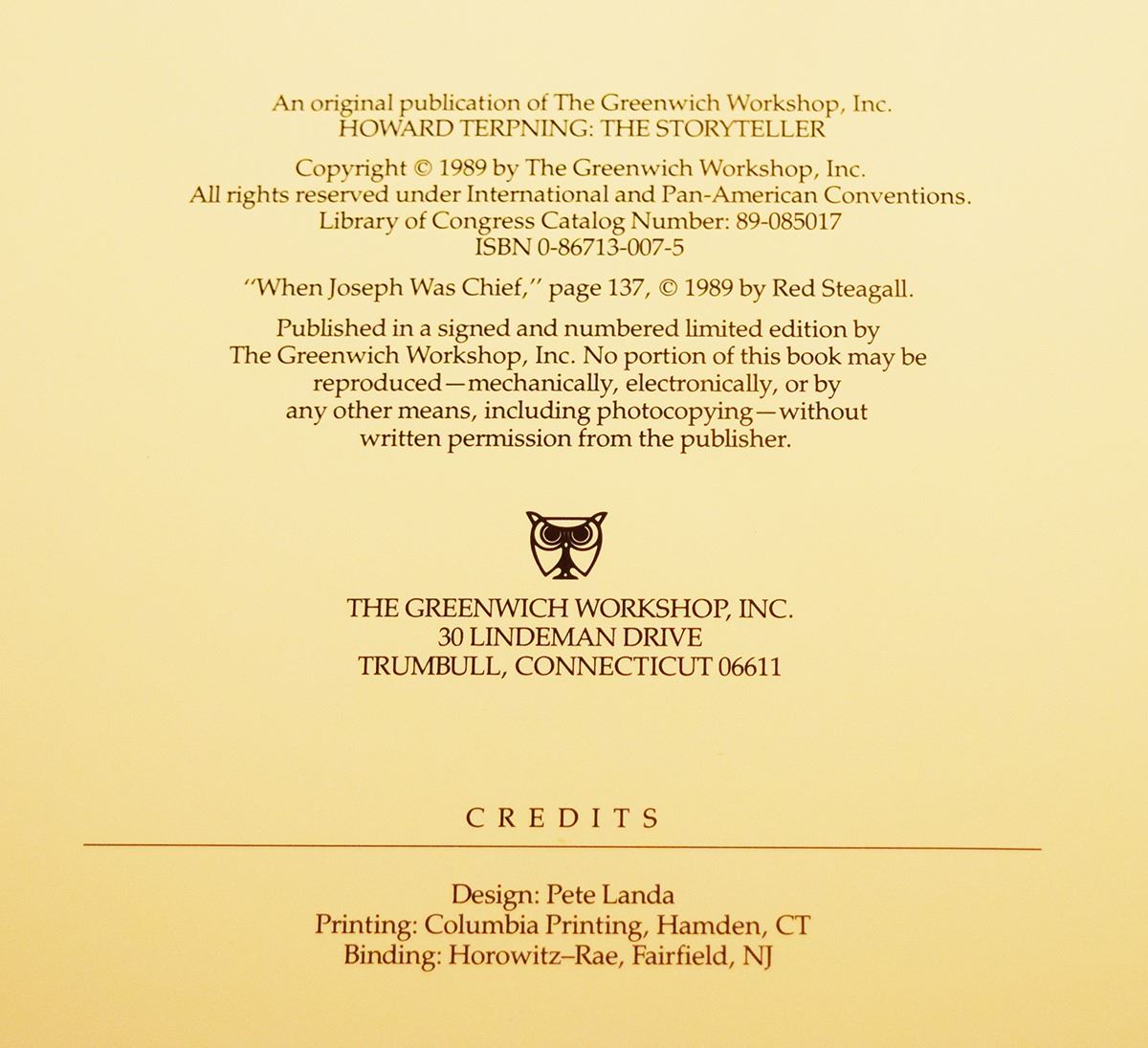 Howard Terpning The Storyteller, ©1989, #159/1500, text by Don Dedera, intro by Bob Scriver, published by The Greenwich Workshop
