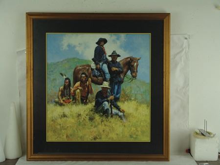 Ca. 1996, Outstanding signed limited edition (S 52/1000) full color lithograph titled "Before the Little Bighorn." Excellent condition. Double matted and framed under glass. 22" x 21" (30" x 29" framed)