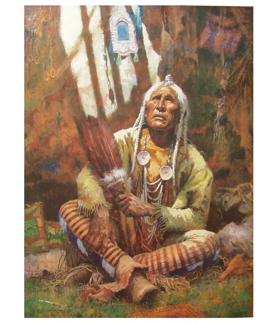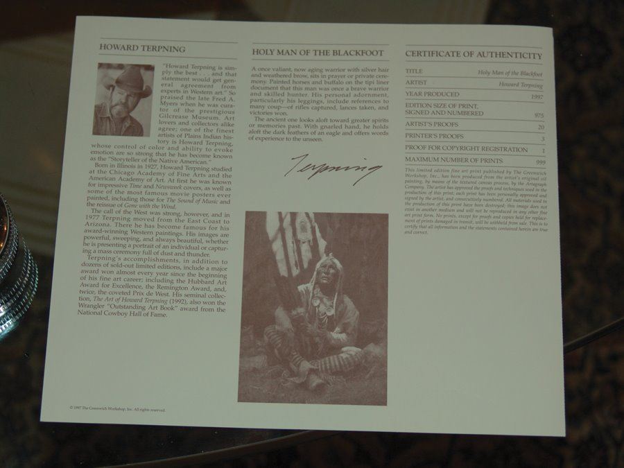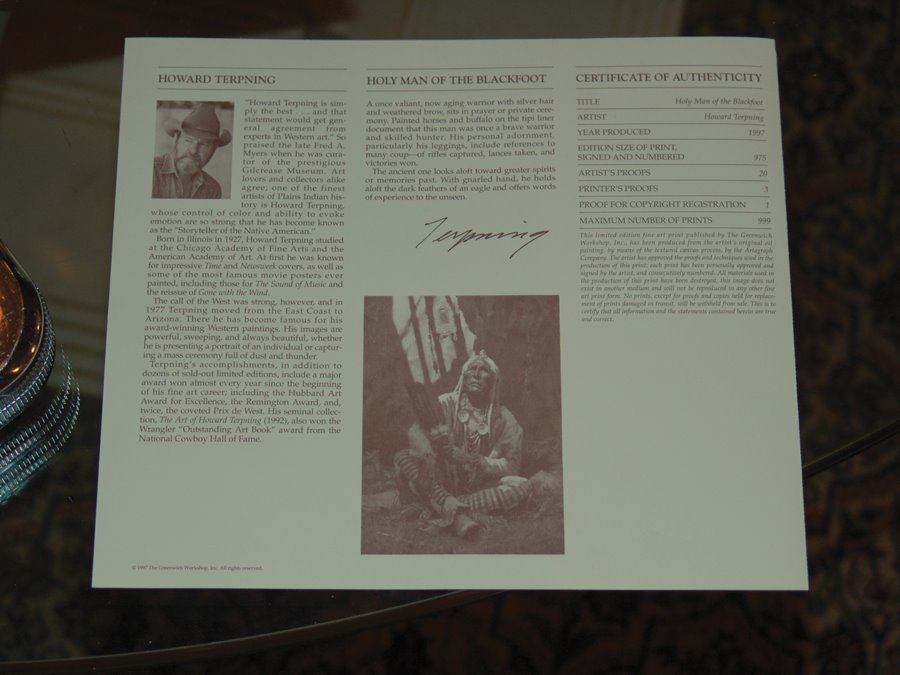 Large beautiful signed limited edition (#832/975) Greenwich edition giclee "Holyman of the Blackfoot.",,42 " x 34 "